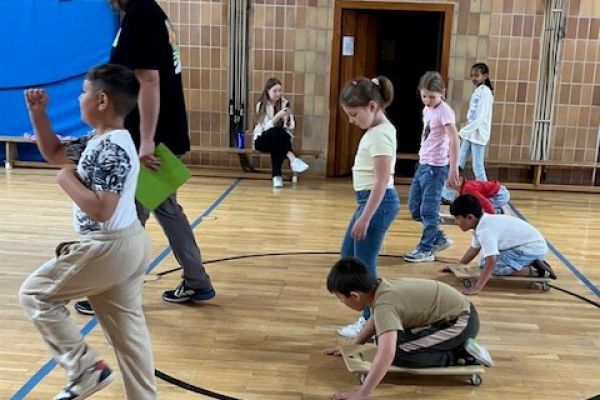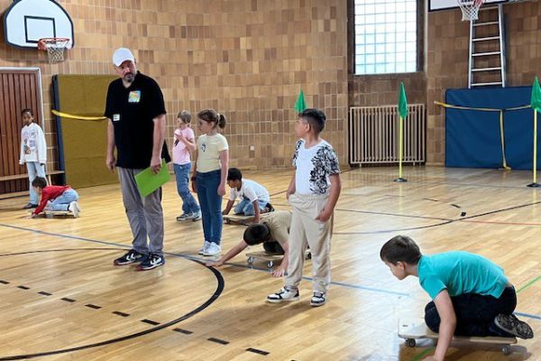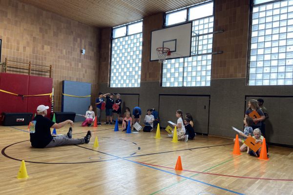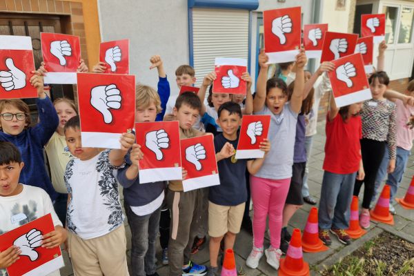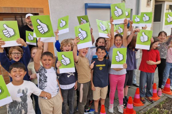 Das Projekt "Auf die Bremse, fertig, los...!" ist seit einigen Jahren fester Bestandteil unseres Schulprofils "In Sicherheit die Welt entdecken". Die Kinder der 3. Klassen kommen dabei zunächst in der Turnhalle in den Genuss auf ebenso spielerische, wie lustige Weise sich verändernde Bremswege kennenzulernen und die Möglichkeit, ein Gefährt rasch zum Stillstand zu bringen. Highlight der insgesamt drei Schulstunden andauernden Aktion ist jedes Mal die Geschwindigkeitsmessung in der Holzgartenstraße unmittelbar vor der Schule in der Zone 30. Hierbei bekommen die Verkehrsteilnehmer, die sich an die Vorschriften halten voller Begeisterung einen "grünen Daumen" gezeigt - die "Sünder" allerdings müssen unter lauten Buh-Rufen einen roten nach unten gesenkten Daumen über sich ergehen lassen.