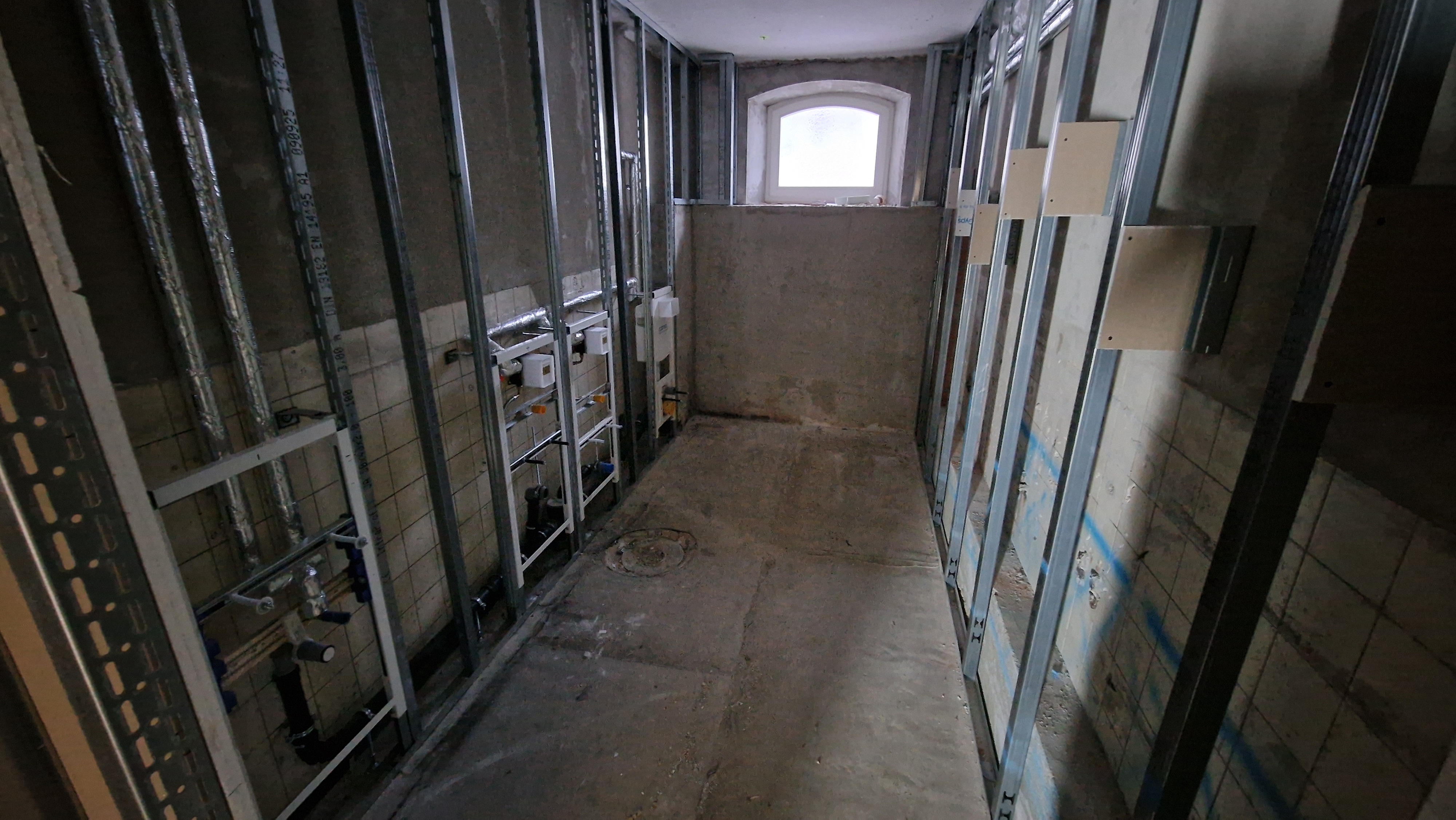 Die Arbeiten an den "Jungentoiletten" sind soweit abgeschlossen, dass die neuen sanitären Einrichtungen ihrer Bestimmung übergeben werden können. Direkt im Anschluss daran werden die Abrissarbeiten der "Mädchentoiletten" in Angriff genommen.