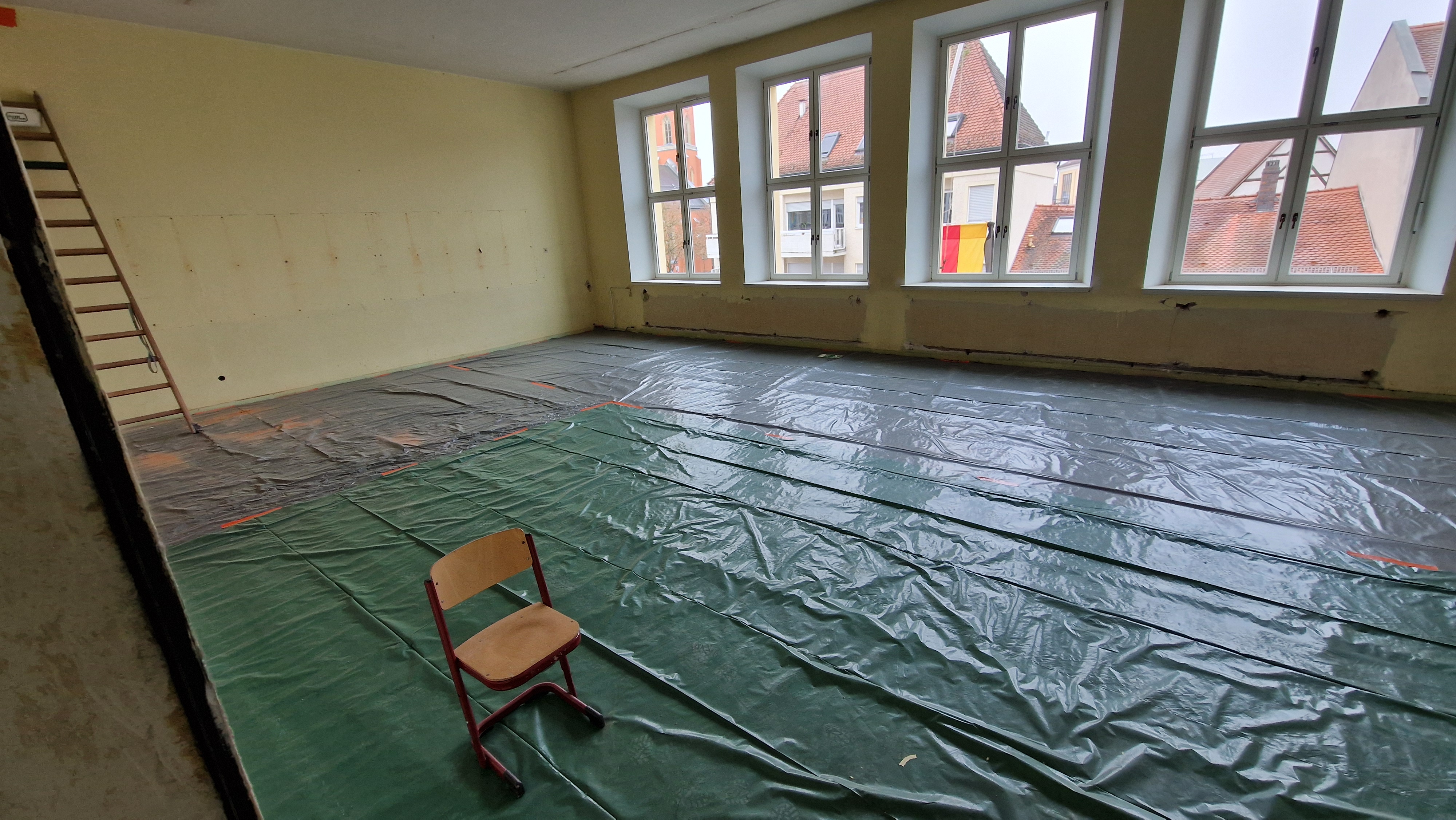 Austausch der Fenster, Schallisolierung, neue Wandfarbe, Verkabelung aller Räume hinsichtlich der Digitalisierung und nicht zuletzt natürlich die Instandsetzung der zum Teil maroden sanitären Einrichtung sind nur einige der Arbeiten, die nach etwa zwei Jahren zum Abschluss kommen sollen.