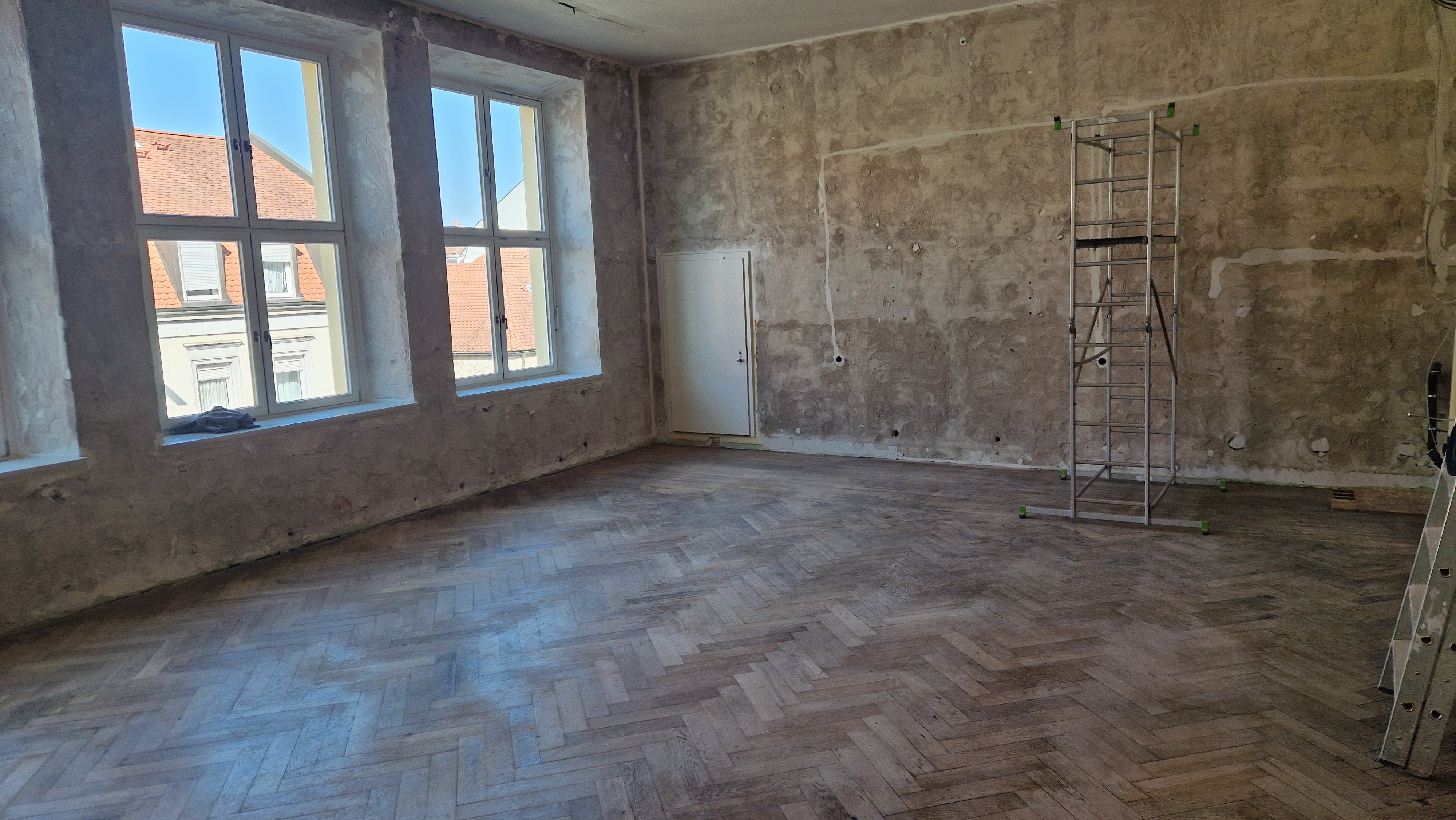 Nach acht Monaten sind die Räume im Erdgeschoss fertiggestellt und können bezogen werden. Die Abbrucharbeiten im 1. OG hätten unmittelbar im Anschluss beginnen sollen. Vor Ende Januar 2026 rücken keine Handwerker an.