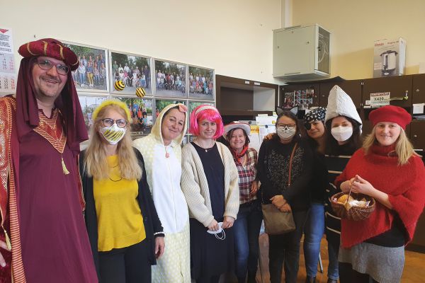Einige Polonaisen zogen munter durch die Gänge des Schulhauses und zu lautstarker Faschingsmusik tanzten die kostümierten Wunderburger ausgelassen in die Ferien hinein.