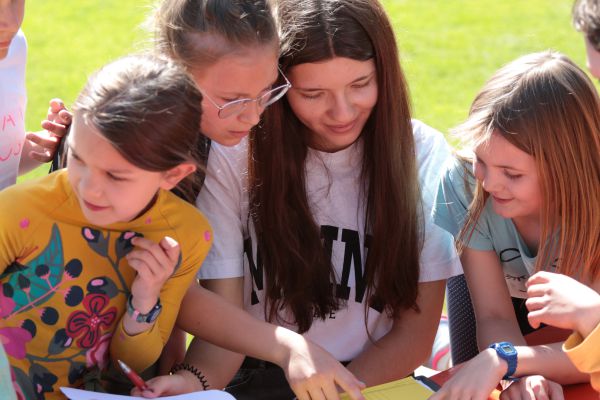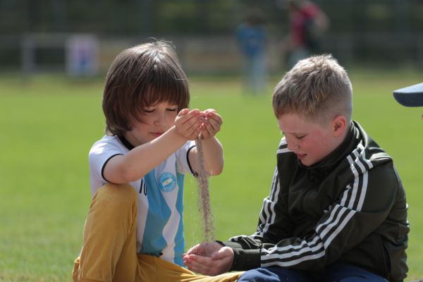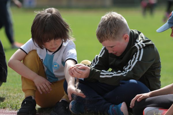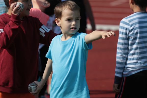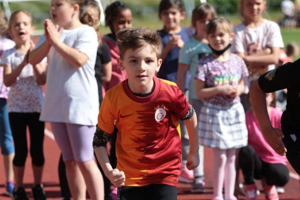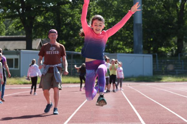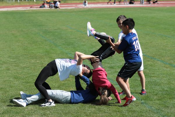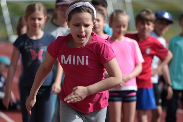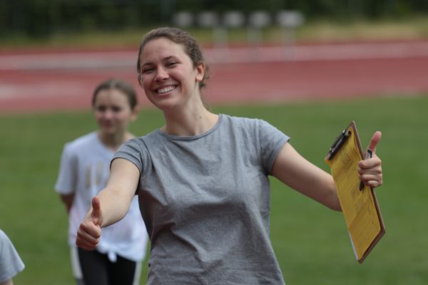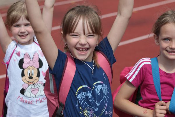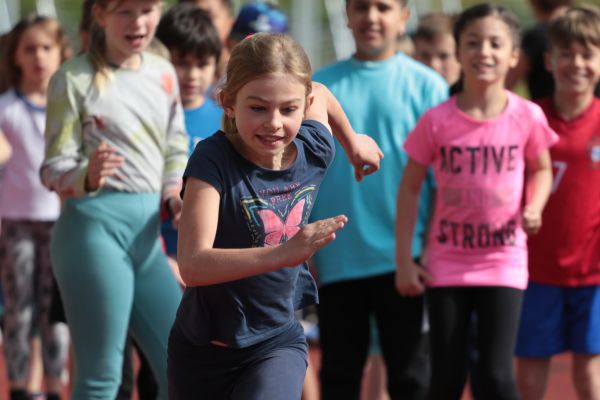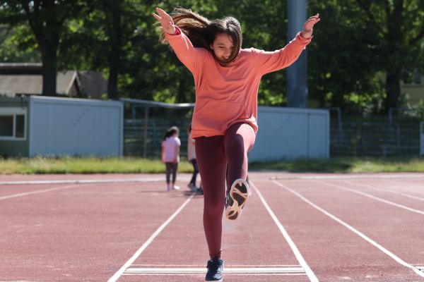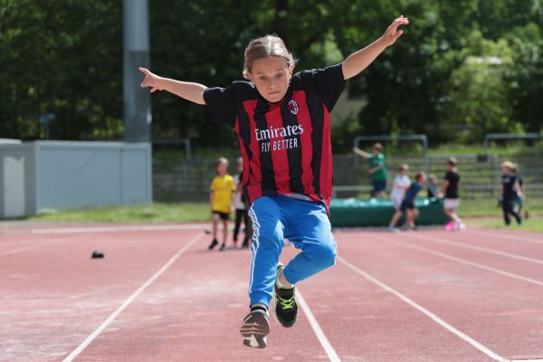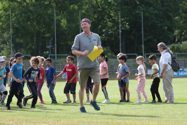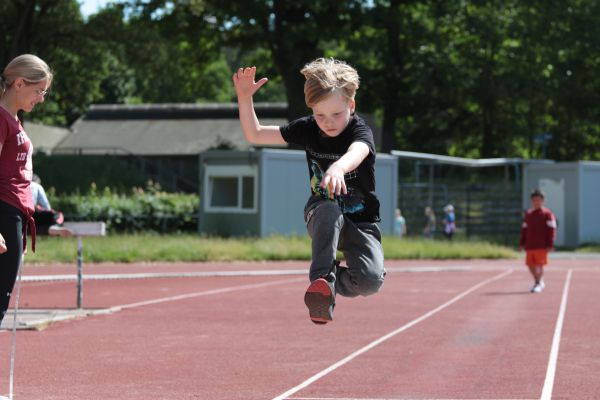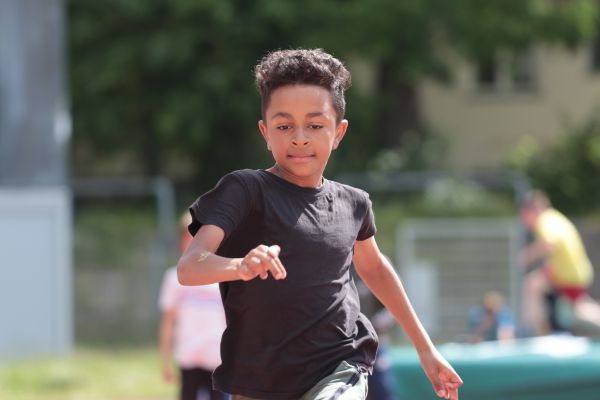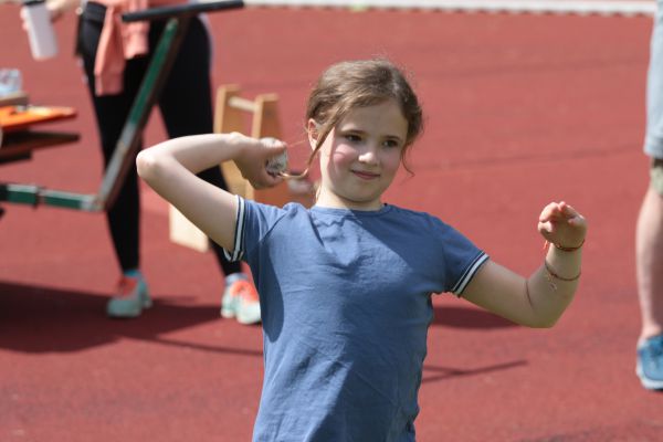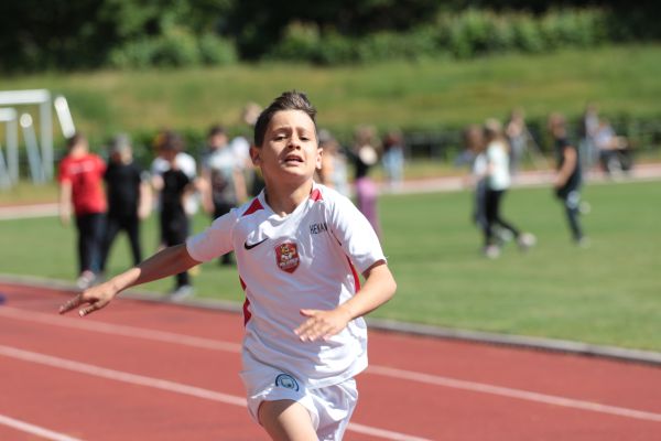 Alle Klassen von der 1. - 4. Jahrgansstufe gaben in den Disziplinen 50m-Sprint, Weitwurf mit dem 80g-Ball sowie Weitsprung ihr Bestes, feuerten sich gegenseitig lautstark an und feierten ihre tollen Leistungen.