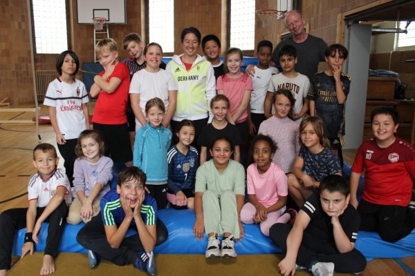 Kim Bui Am Mittwoch, den 18.10.2023 bekamen die Klassen 4a und 4b der Wunderburgschule Besuch von Kunstturnerin Kim Bui. Der Besuch fand in der Turnhalle statt. Die beste deutsche Kunstturnerin ist 34 Jahre jung und nahm dreimal an olympischen Spielen teil. Im Laufe ihrer Karriere gewann sie rund 120 Medaillen und zwanzig Pokale. Sie fing mit vier Jahren in Tübingen das Turnen an und ist die Tochter einer Vietnamesin und eines Laoten. Im Jahr 2022 zog sich Kim Bui von ihrer Turnkarriere zurück.