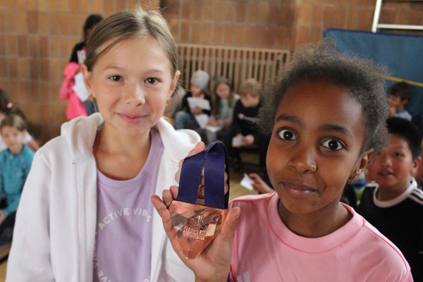 Anschließend bekamen wir die Gelegenheit, eine der von der besten deutschen Turnerin gewonnenen Bronzemedaillen zu sehen und anzufassen. Außerdem zeigte sie uns unter anderem einige ihrer bildschönen Turnanzüge. Einen entwarf sie zusammen mit einem Designer selber und entwickelte ihn so, dass sie das funkelnde Kostüm bei dem letzten Wettkampf ihrer Karriere anziehen konnte.