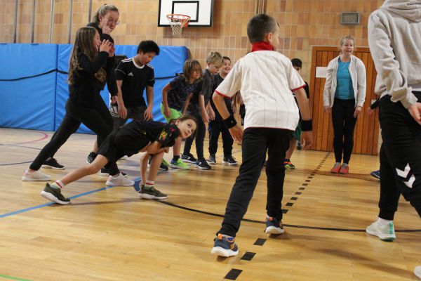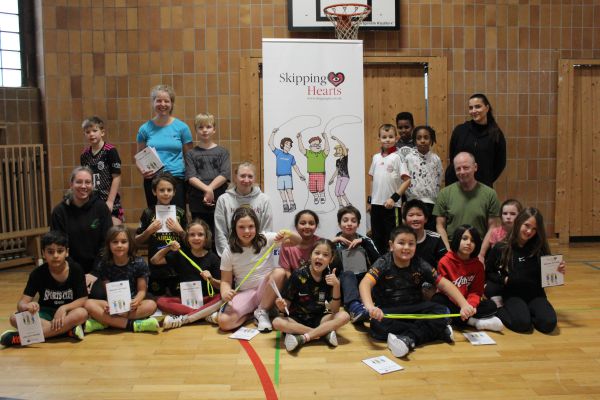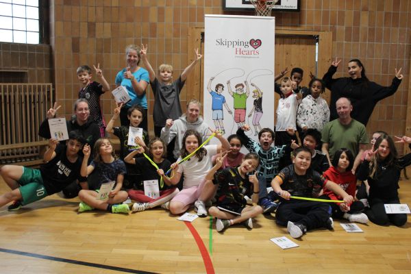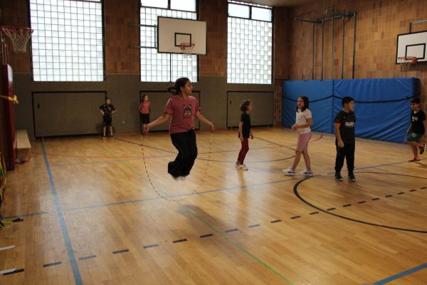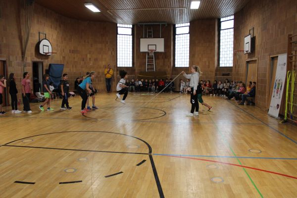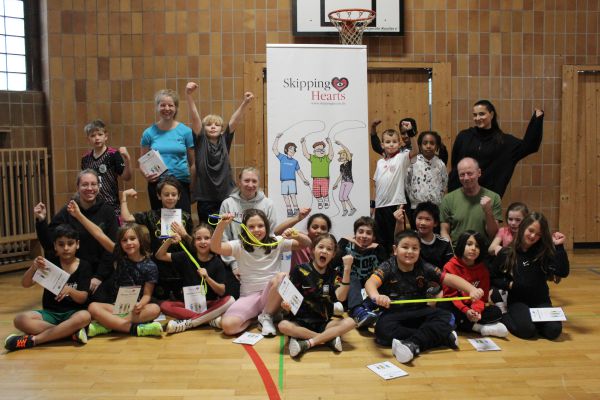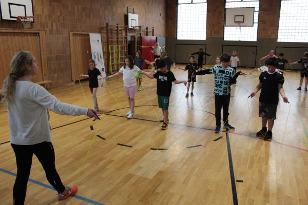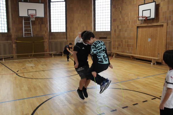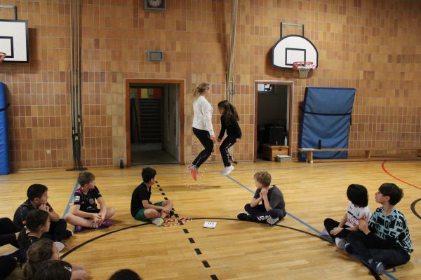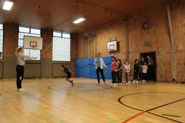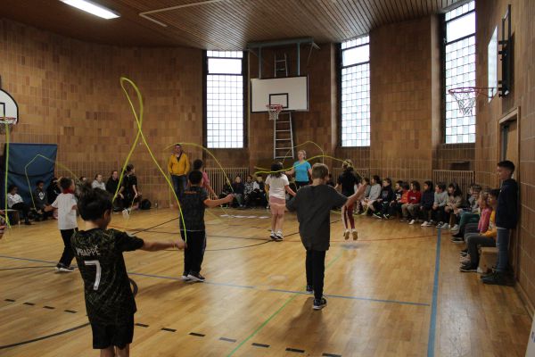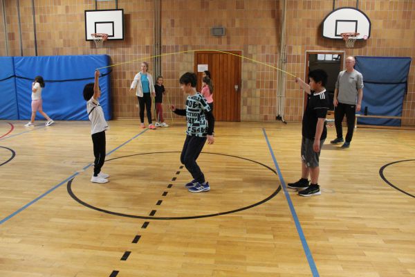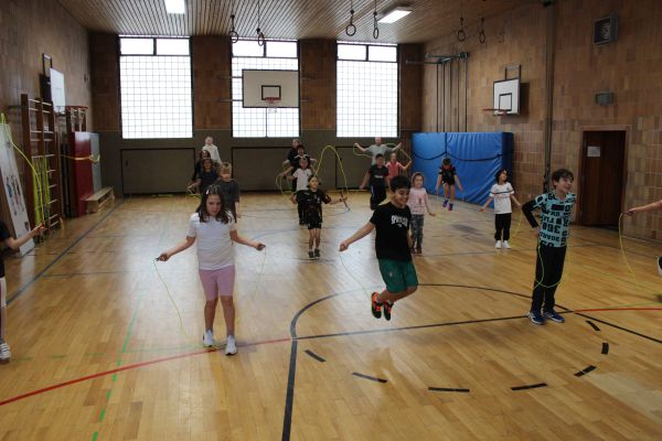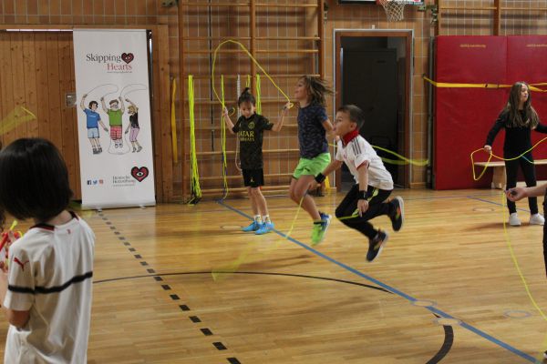 Skipping Hearts "Skipping Hearts" heißt eigentlich übersetzt "springende Herzen". Die deutsche Herzstiftung kommt mit diesem Projekt an viele Schulen. Kinder und Jugendliche sollen sich mit Spaß an Bewegung erfreuen.Am Mittwoch, 29.11.2023 war es bei uns an der Schule endlich soweit. Wir hatten Besuch von einer jungen Frau, die uns in der Turnhalle herzlich begrüßte. Anschließend spielten wir ein Spiel. Und das ging so: Es gab zwei Fäger, die anderen mussten weglaufen. Außerdem gab es noch zwei Feen, die befreien konnten, indem sie mit dem gefangenen Kind Seil springen. Zunächst sollten wir uns einen Partner suchen. Dann teilten wir uns ein Seil. Als erstes wird das Seil geschwungen und eine Person läuft rein und springt im Rhythmus. Das war schon schwierig. Anschließend machten wir verschiedene Übungen zum Seilspringen, wie z.B. auf einem Bein hüpfen.Nach der Pause ging es mit vielen Spielstationen weiter. In der letzten Stunde haben wir die Zeit zum Proben für die Aufführung genutzt. Endlich kam die Aufführung. Als erstes machten wir die mit unserem Partner. Anschließend führten wir unser Können am Seil vor. Wir waren alle ziemlich aufgeregt, aber es war auch total schön und wir haben von den anderen Klassen, die zuschauten viel Applaus bekommen.