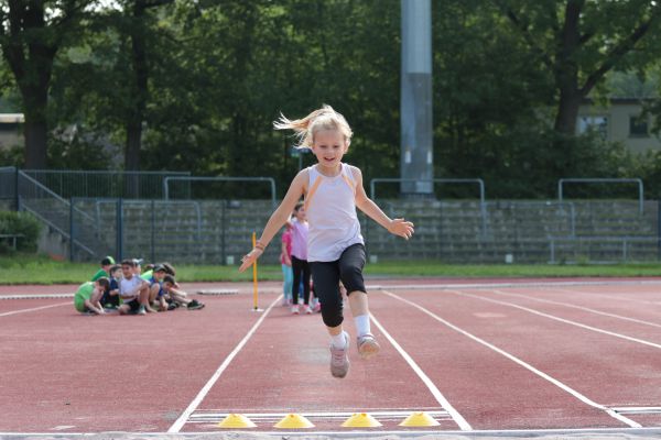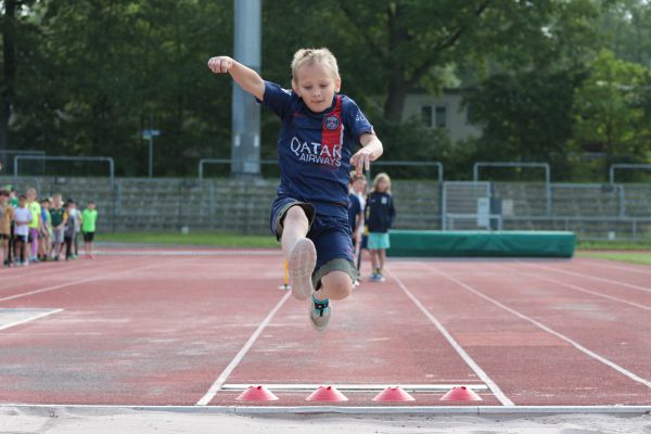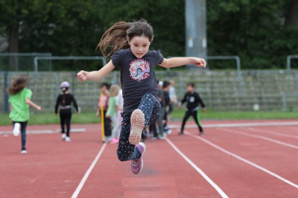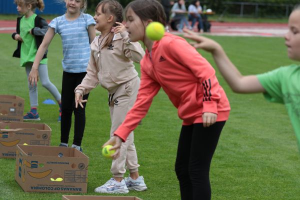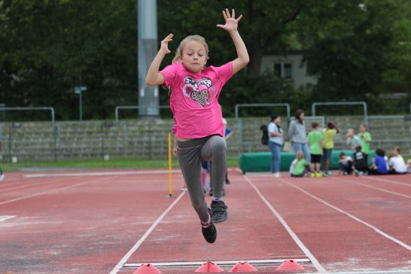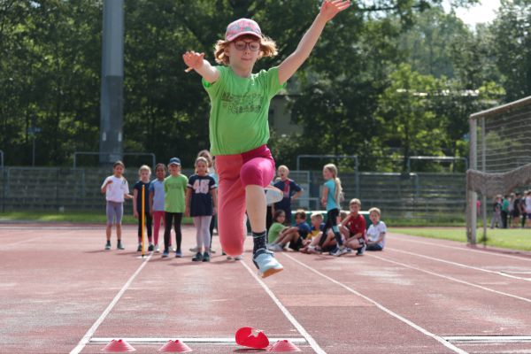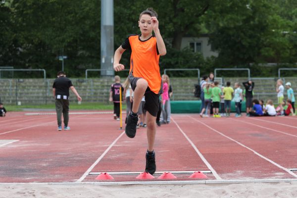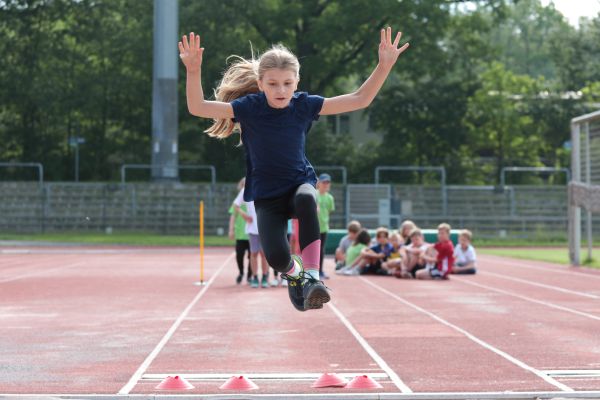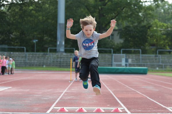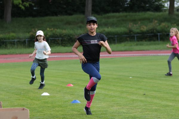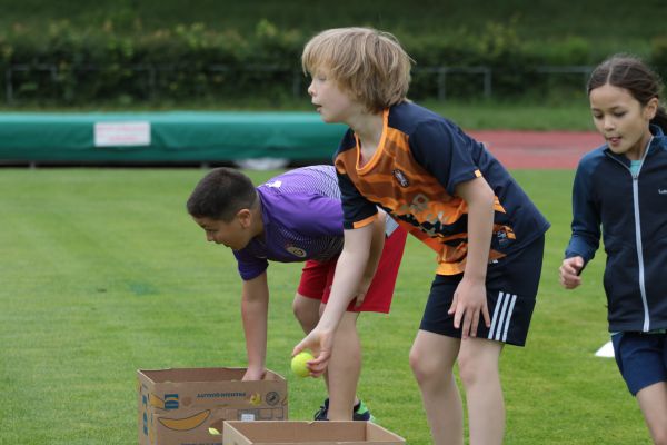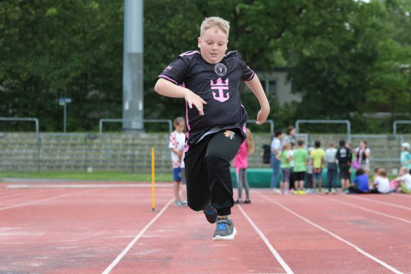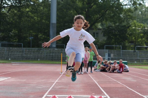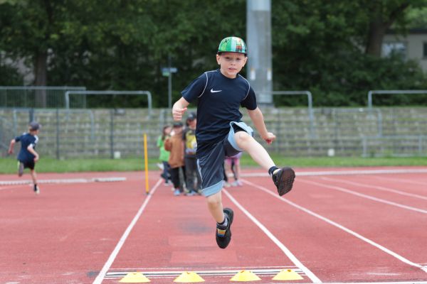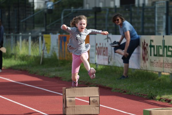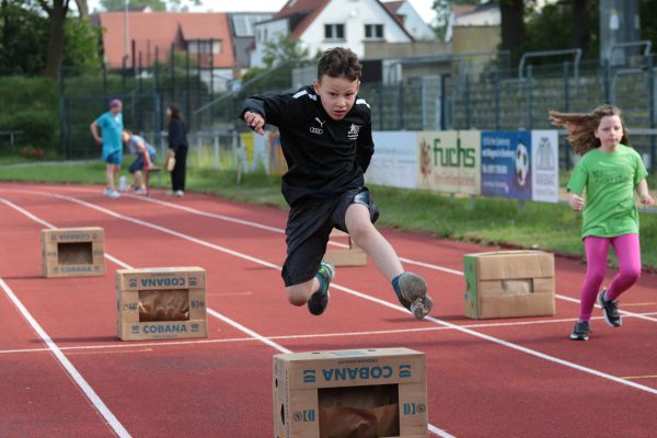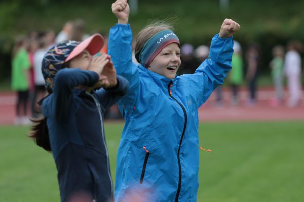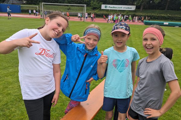 Am 5. Juni fanden im Fuchsparkstadion zum ersten Mal die "alternativen Bundesjugendspiele" statt, die in Form eines Wettbewerbes ausgetragen wurden. Anstelle der "klassischen" Disziplinen der Leichtathletik rückte nun ein Zonenweitsprung, ein Zonenweitwurf, ein Sprint über Hürden und im Ausdauerbereich "Biathlon". Die Kinder aller Jahrgangsstufen waren mit Eifer dabei, sportliche Höchstleistungen zu erzielen - und rechtzeitig vor dem Regen sind wir auch fertig geworden.