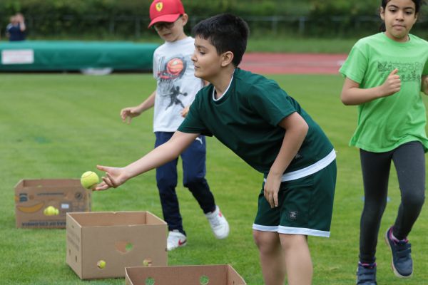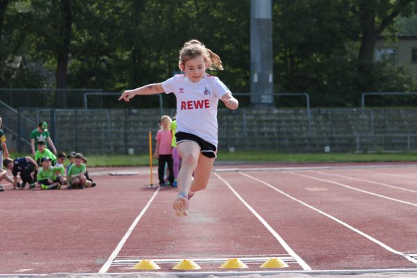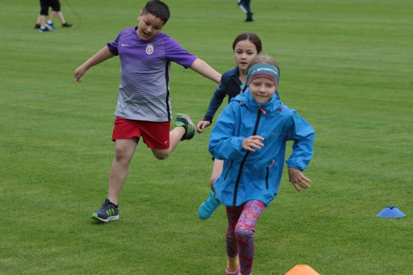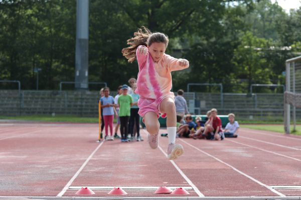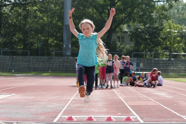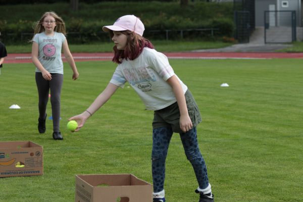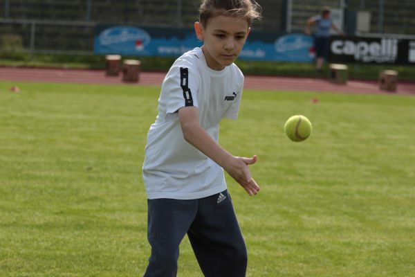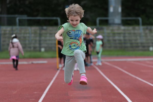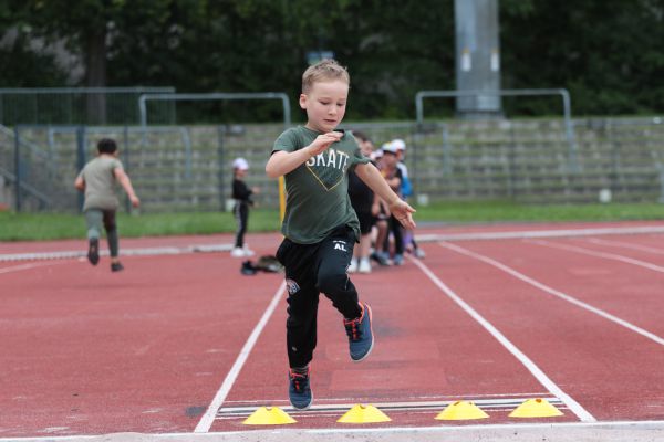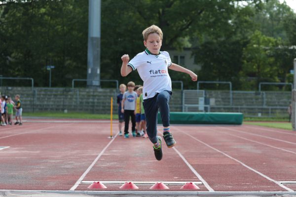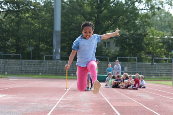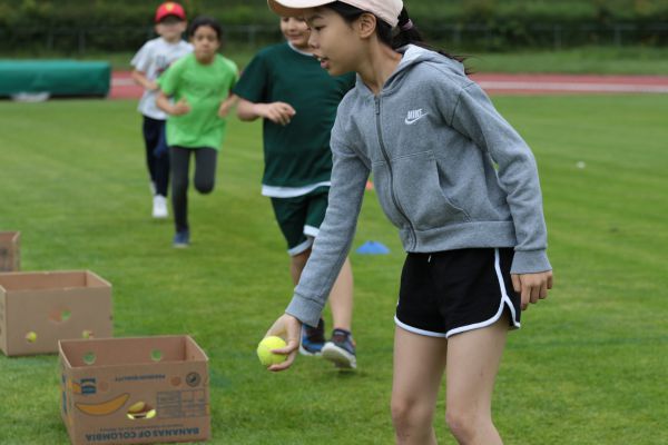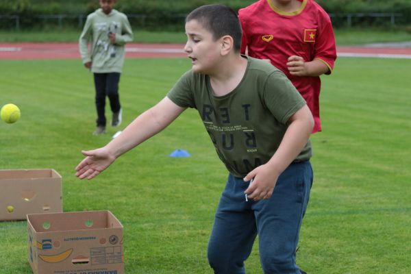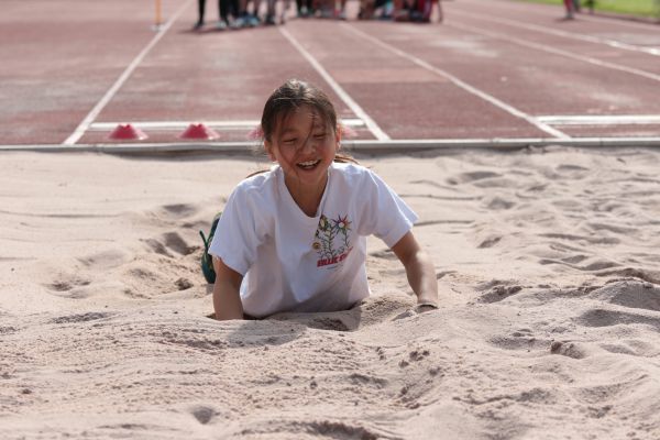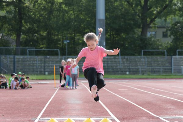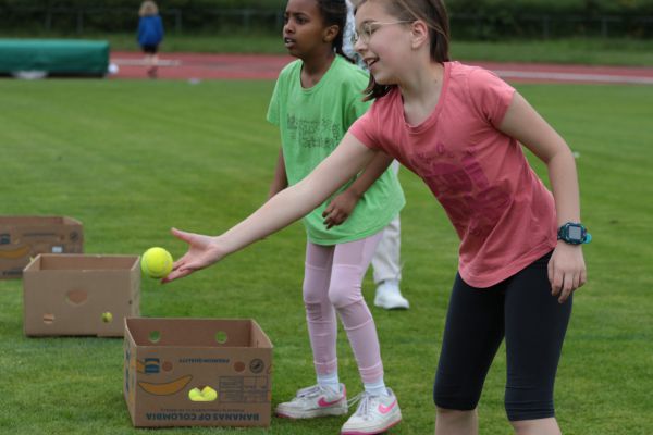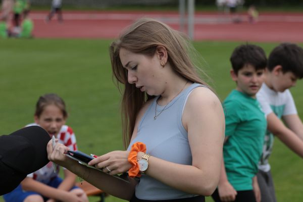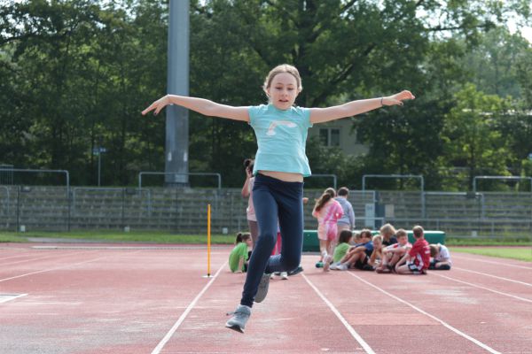 Am 5. Juni fanden im Fuchsparkstadion zum ersten Mal die "alternativen Bundesjugendspiele" statt, die in Form eines Wettbewerbes ausgetragen wurden. Anstelle der "klassischen" Disziplinen der Leichtathletik rückte nun ein Zonenweitsprung, ein Zonenweitwurf, ein Sprint über Hürden und im Ausdauerbereich "Biathlon". Die Kinder aller Jahrgangsstufen waren mit Eifer dabei, sportliche Höchstleistungen zu erzielen - und rechtzeitig vor dem Regen sind wir auch fertig geworden.