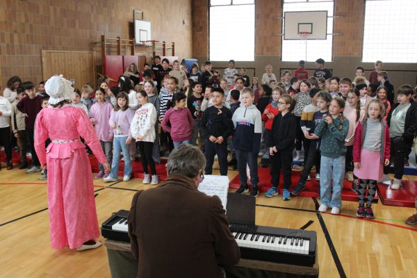 Traditionell besuchte uns auch in diesem Schuljahr wieder das Musiktheater Santa und hatte heuer eine "launische Forelle" im Gepäck. Bei diesem tollen Zwei-Personen-Stück wurde die Turnhalle der Wunderburgschule in eine Theaterbühne verwandelt und schon tauchten die Kinder in die Welt des Komponisten Franz Schubert ein.