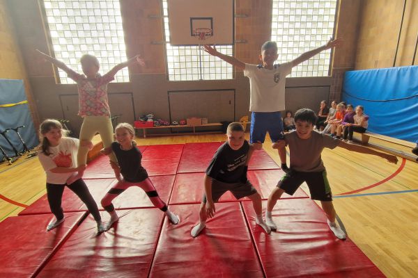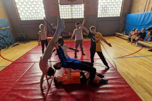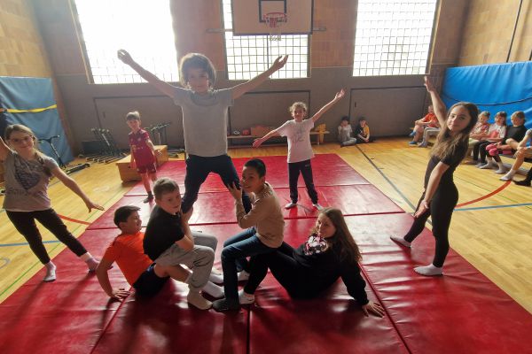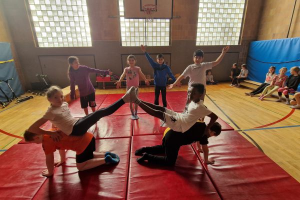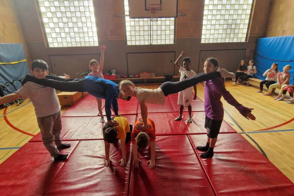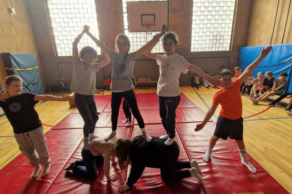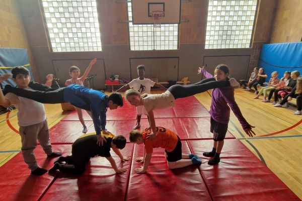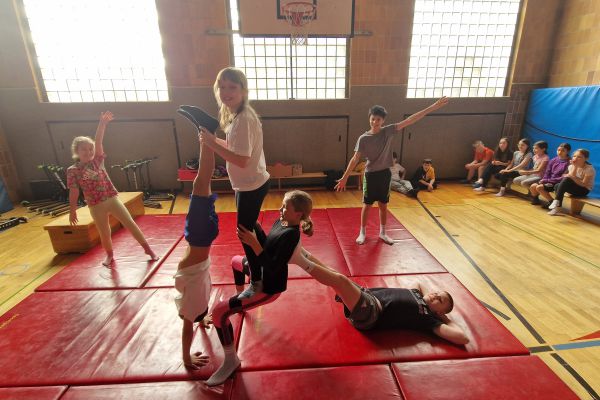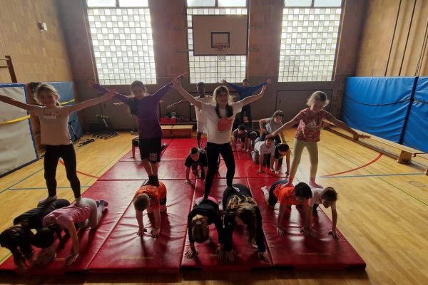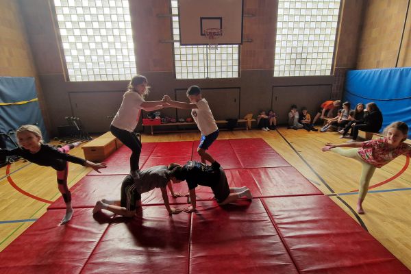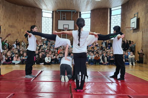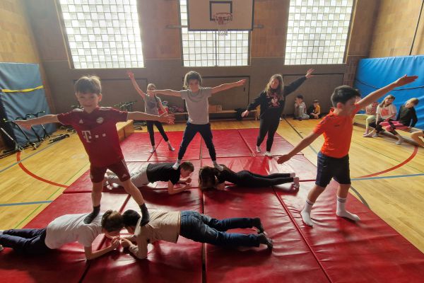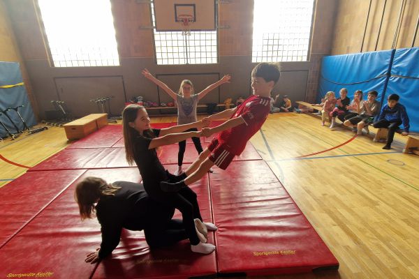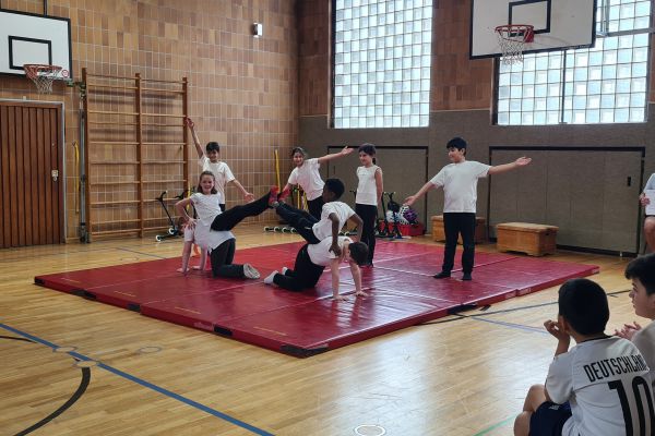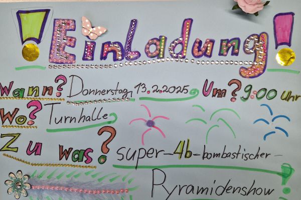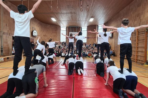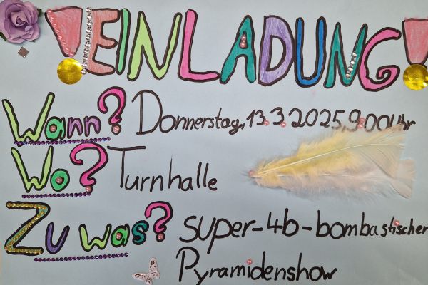 Am Donnerstag, 13. März lud die Klasse 4b zu den "bombastischen Pyramiden" in die Turnhalle ein. Alle Klassen und zahlreiche Eltern folgten dem Ruf der Kinder und ließen sich von den akrobatischen Leistungen beeindrucken.