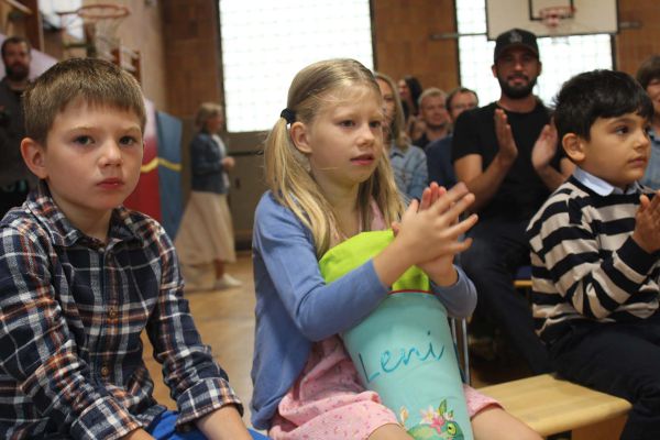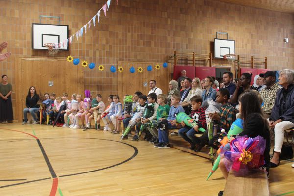 Am Dienstag, 10. september herrschte reichlich Trubel an der Wunderburgschule, als wir insgesamt 57 neue Erstklässer in unserer Gemeinschaft begrüßen konnten. Jede der drei Klassen wurde feierlich in der Turnhalle begrüßt, wobei die 2. Klassen unter der Leitung von Frau Gatnar und Frau Gratza für die stimmungsvolle, musikalische Untermalung sorgten.
