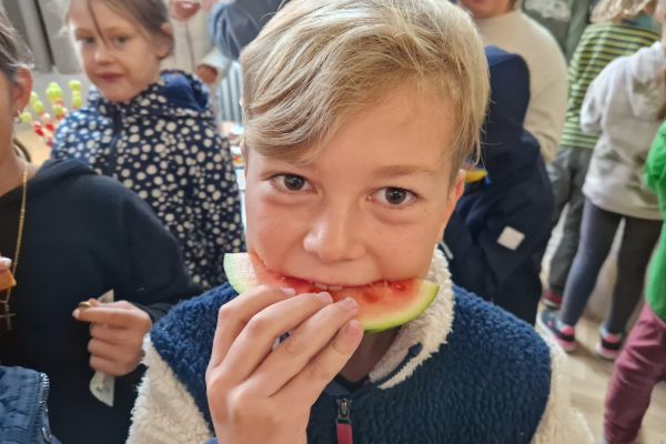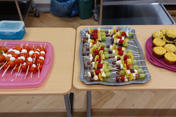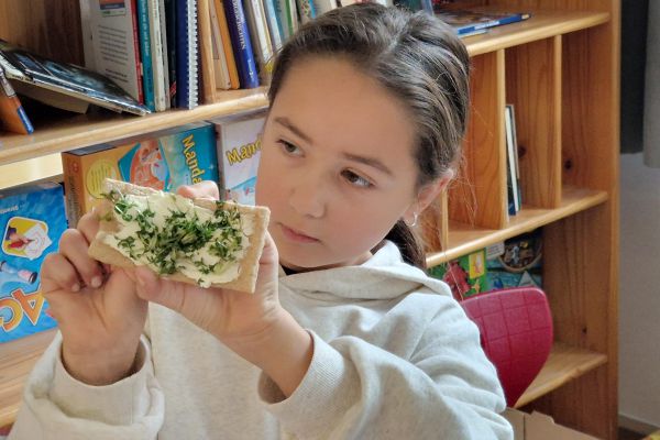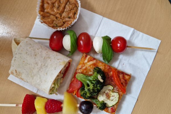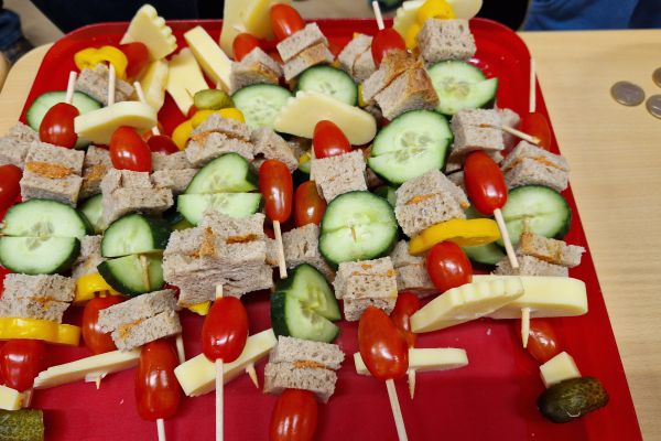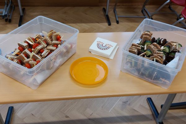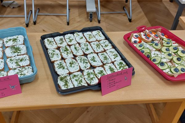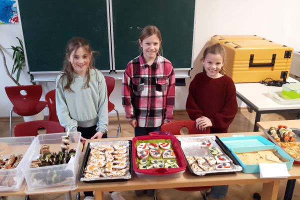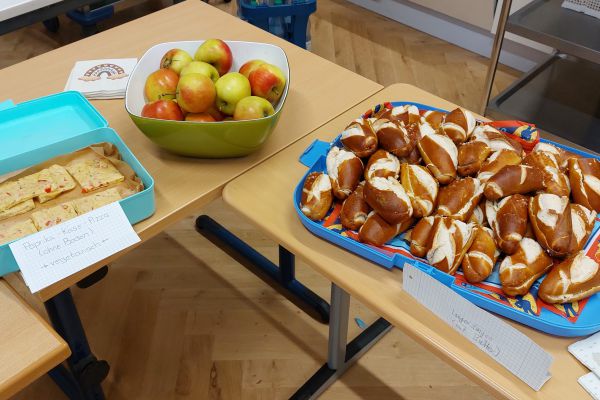 In jedem Monat zeichnet eine andere Klasse für die Zubereitung des gesunden Pausenfrühstücks verantwortlich. Dann gibt es beinahe schon traditionell Quarkbrot, Obst- und Gemüßespieße und allerlei weitere Köstlichkeiten, die bei Groß und Klein reißenden Absatz finden.