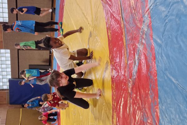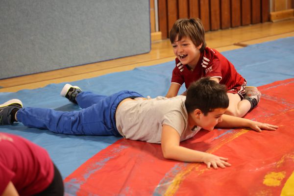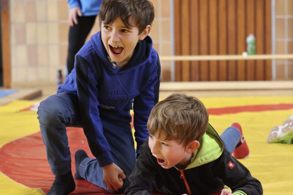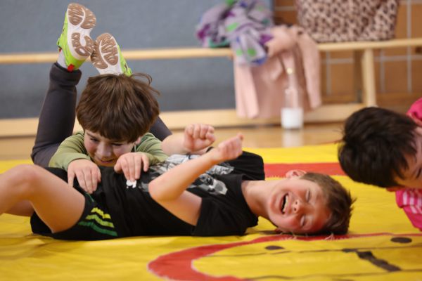 So wuchsen viele Kinder über sich hinaus, probierten neue Bewegungen aus und lernten dabei mit jeder Menge Freude so ganz nebenbei auch, wie man rücksichtsvoll nach Regeln kämpfen beziehungsweise ringen und raufen kann.
