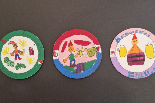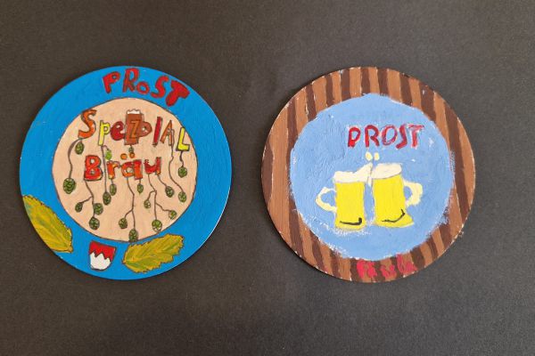 In Zusammenarbeit mit der Gaststätte Kachelofen sowie der Brauerei Spezial und der Brauerei Fässla haben die 3. Klassen der Wunderburgschule ein einzigartiges Kunst-Projekt gestartet. Nachdem die Kinder unzählige Filze aus diversen Gaststuben und Lokalen gesammelt hatten, um sich Merkmale anzuschauen, die auf allen Getränkeuntersetzern häufig vorkommen und nachdem wir die Kennzeichen der drei Traditionslokale in Bamberg genauer unter die Lupe genommen hatten, griffen die Jungen und Mädchen zu Pinsel und Arcylfarben, um ihre ganz eigenen Ideen zu verwirklichen und Filzla für die zwei Brauereien und die Gaststätte zu entwerfen.