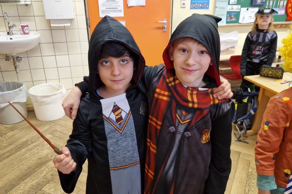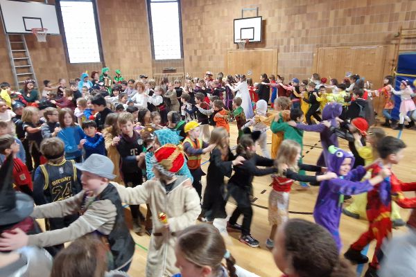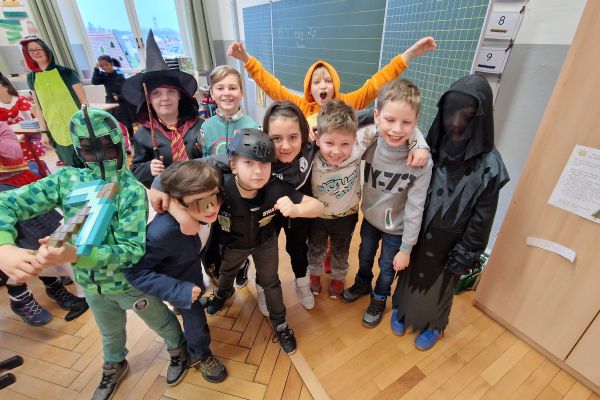 Ganz schön närrisch ging es am Freitag, 28. Februar in den Klassenzimmern, auf den Gängen und zum krönenden Abschluss in der Turnhalle zu. Allerlei Schmetterlinge, Astronauten, Harry Potters, Fußballstars, Cowboys und viele andere kreative Kostüme fanden sich ein, um ausgelassen Fasching zu feiern.