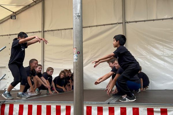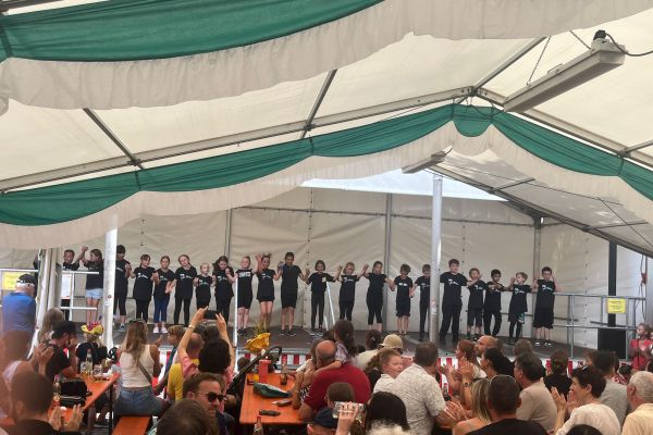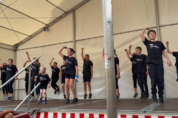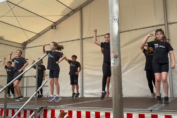 Nach einer kurzen Rede von Seiten der Leiterin der Tanz-AG, Frau Stier, stiegen die 3. Klässler aufgeregt auf's Parkett. Zum Einstieg gab es ein beeindruckendes Intro, das die Zuschauer erstaunen ließ. Gefolgt von einer Choreographie auf Kings & Queens, Sofia und zu guter Letzt eine Choreographie auf APT, dem neuesten Hit unter den Kindern. Die Stimmung im Festzelt war berauschend und die Kinder durften nach einem tosenden Applaus sogar noch eine Zugabe tanzen.