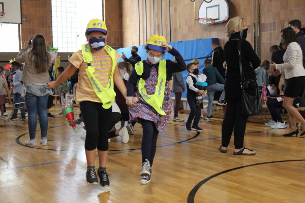 Schließlich bezogen die Klassenlehrerinnen Frau Fischer und Frau Grimm mit ihren Kindern die Klassenzimmer und verlebten so einen abwechslungsreichen 1. Schultag.