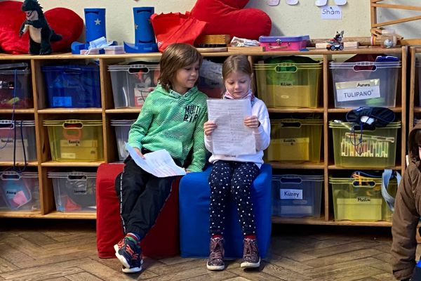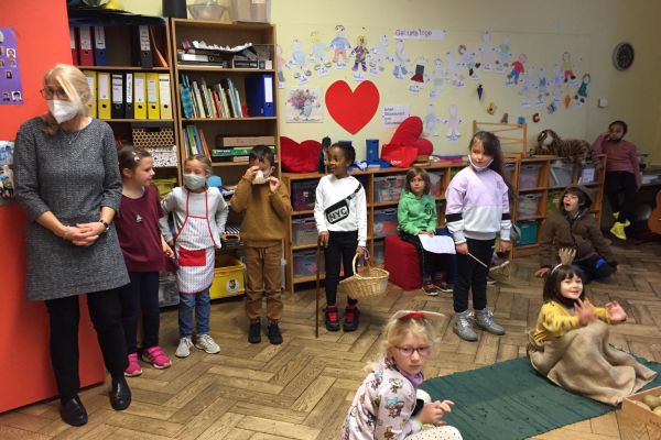 Zuerst wurde es gelesen und mit passenden Orff-Instrumenten begleitet. Dann wurden die Rollen verteilt. Die Erzähler mussten ihren langen Text betont und laut vorlesen- das brauchte Übung. Die Schauspieler mussten ihre Rollen auswendig lernen, sich ein bisschen verkleiden und zum Publikum sprechen. Die Musiker mussten genau darauf achten, wann ihr Einsatz kam.