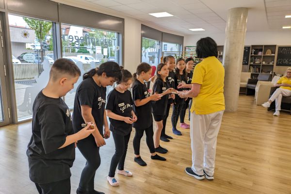 Es ist eine weitere Brücke zur Begegnung zwischen Alt und Jung hier in der Tagespflege Ulanenpark der Sozialstiftung", erklärte die Gerontopsychiatrische Fachkraft Martina Biroga und fuhr im gleichen Atemzug begeistert fort: "Es war eine große Freude anzusehen, wie die lebhafte Energie der Kinder im Einklang mit der Musik sich auf die ältere Generation übertragen hat.“ Auch für die Kinder war es ein besonderes Erlebnis. "Die Seniorinnen und Senioren haben uns die ganze Zeit so herrlich angelacht", erzählte Miray Kilic, eine der Tänzerinnen stolz. Sowohl für die Kinder wie auch für die Gäste der Tagespflege war es eine wunderschöne Abwechslung und Bereicherung des Alltags. Nach einer Zugabe und begeistertem Mitklatschen der älteren Generation bedankte sich das Quartiersbüro bei den Schülerinnen und Schüler mit einer süßen Überraschung und brachte zugleich die Hoffnung auf ein Wiedersehen im nächsten Schuljahr zum Ausdruck.