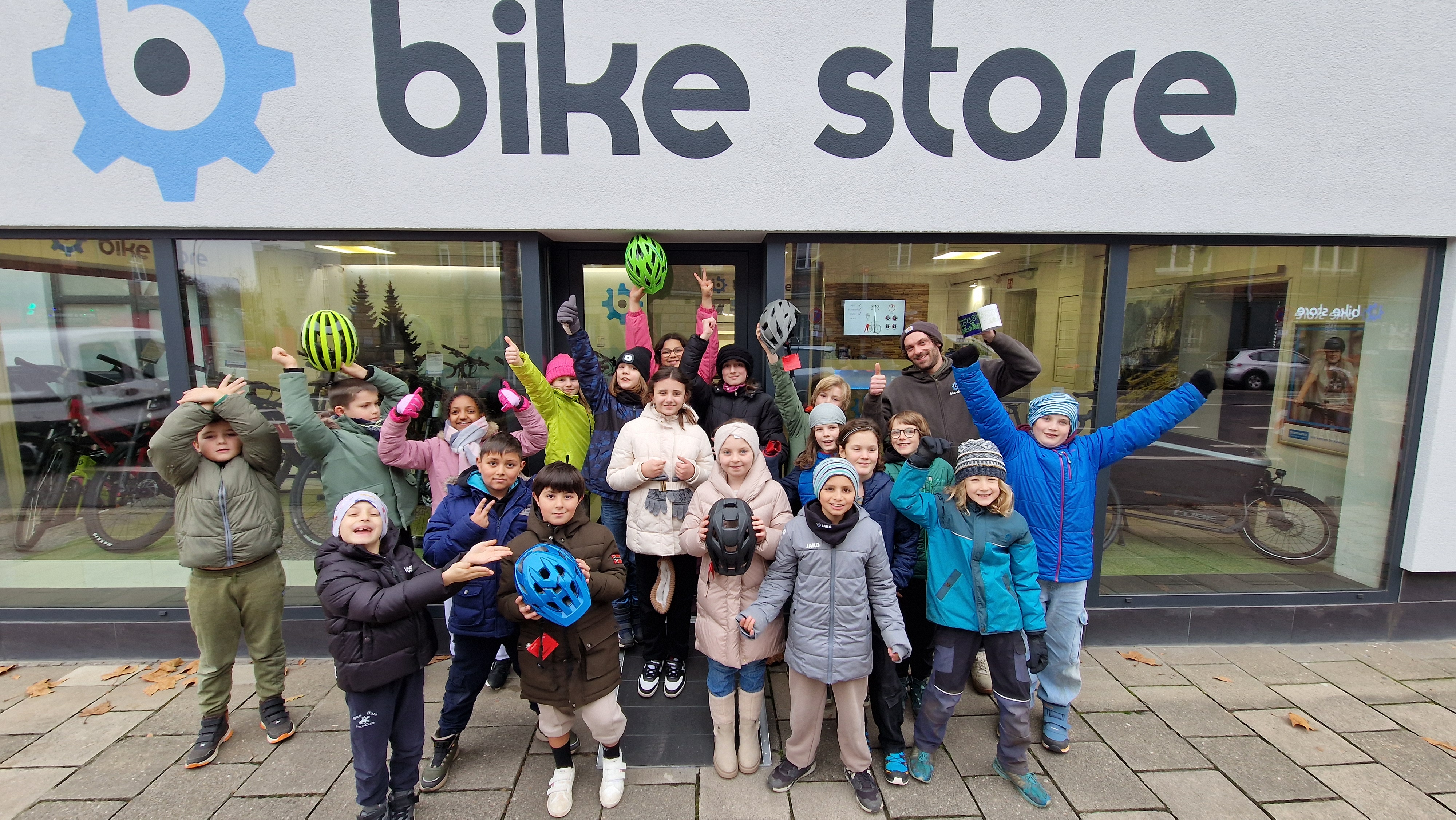 Natürlich kommt es immer wieder einmal vor, dass Kinder ihren eigenen Helm vergessen. Das ist künftig kein Problem mehr, denn im Dezember 2025 durften wir freudestrahlend eine großzügige Spende des "Bike - Store" in der Nürnberger Straße entgegen nehmen.