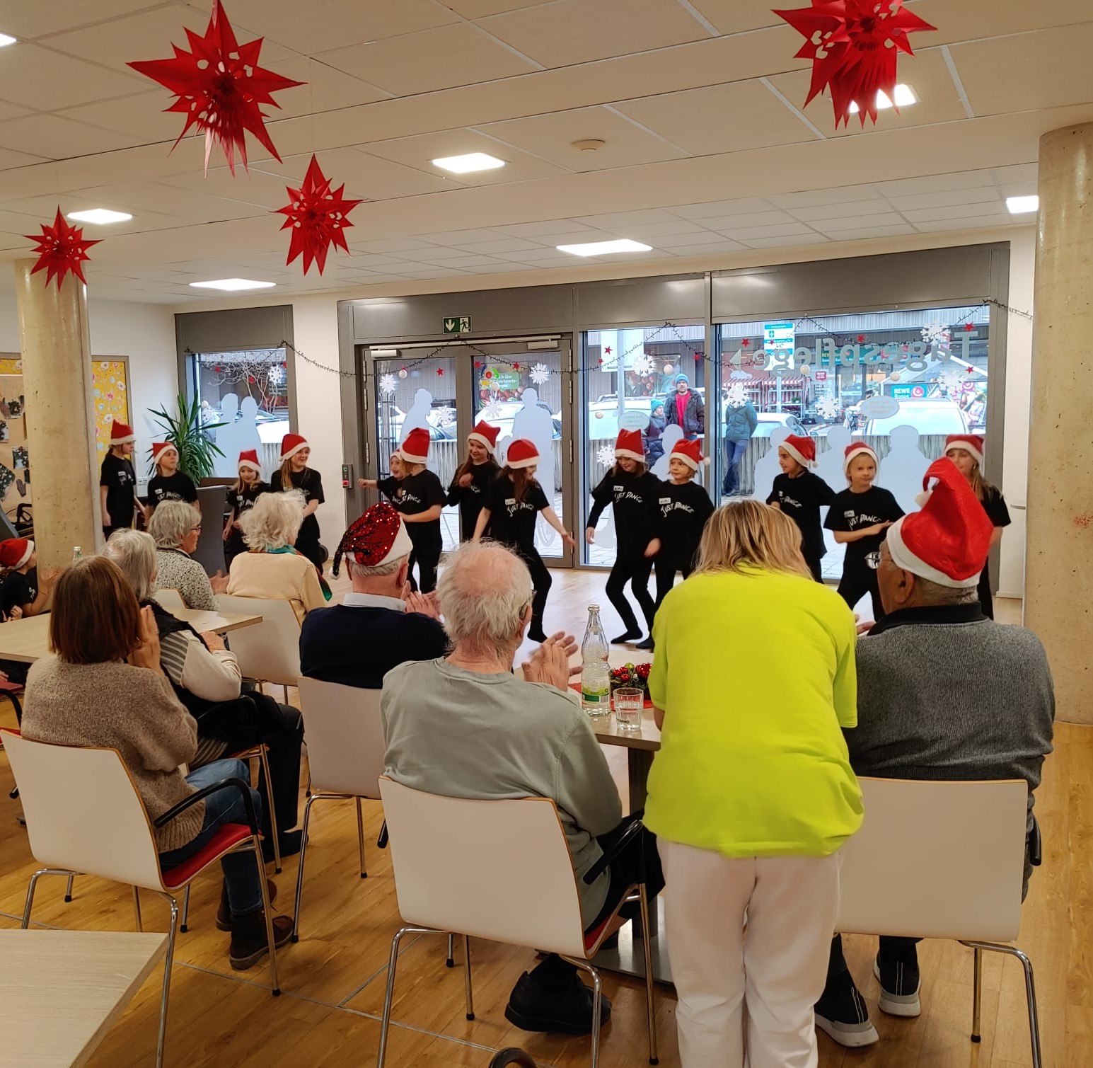 Die Schülerinnen und Schüler der Tanz-AG der Grundschule Wunderburg traten mit ihrem Weihnachtstanz " snow is falling" vor den Gästen der Tagespflege erneut auf. Es war eine wahre Freude für die Gäste, die kleinen Weihnachtswichtel tanzen zu sehen. Die mitreißende Musik und die bezaubernden Bewegungen der Kinder steckten selbst die ältere Generation noch zum Klatschen und Schunkeln ein. Zur Belohnung gab es vom Team der Tagespflege Leckereien aus der Weihnachtsbäckerei. Für alt und jung ein wunderschöner Auftakt in die Weihnachtszeit.