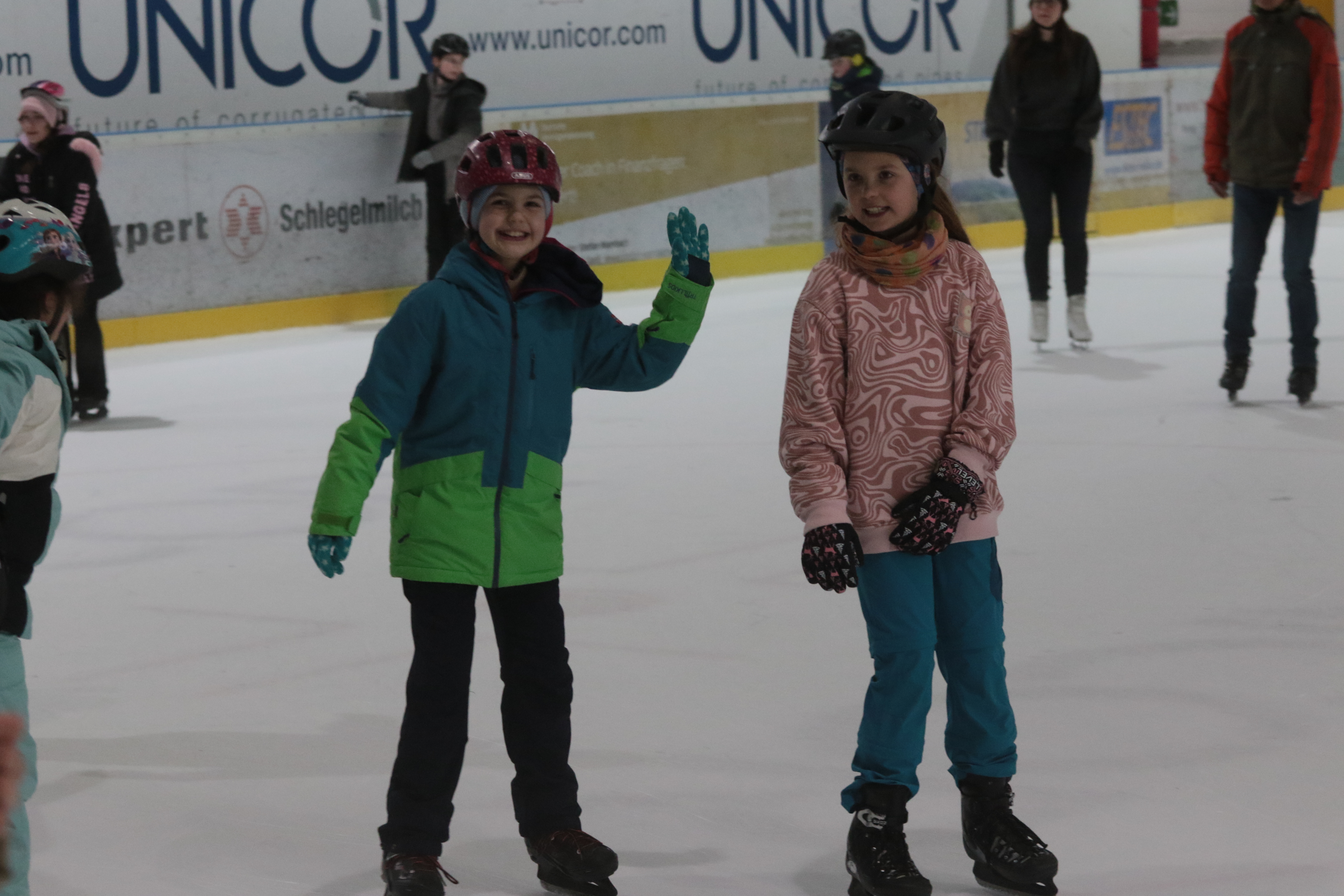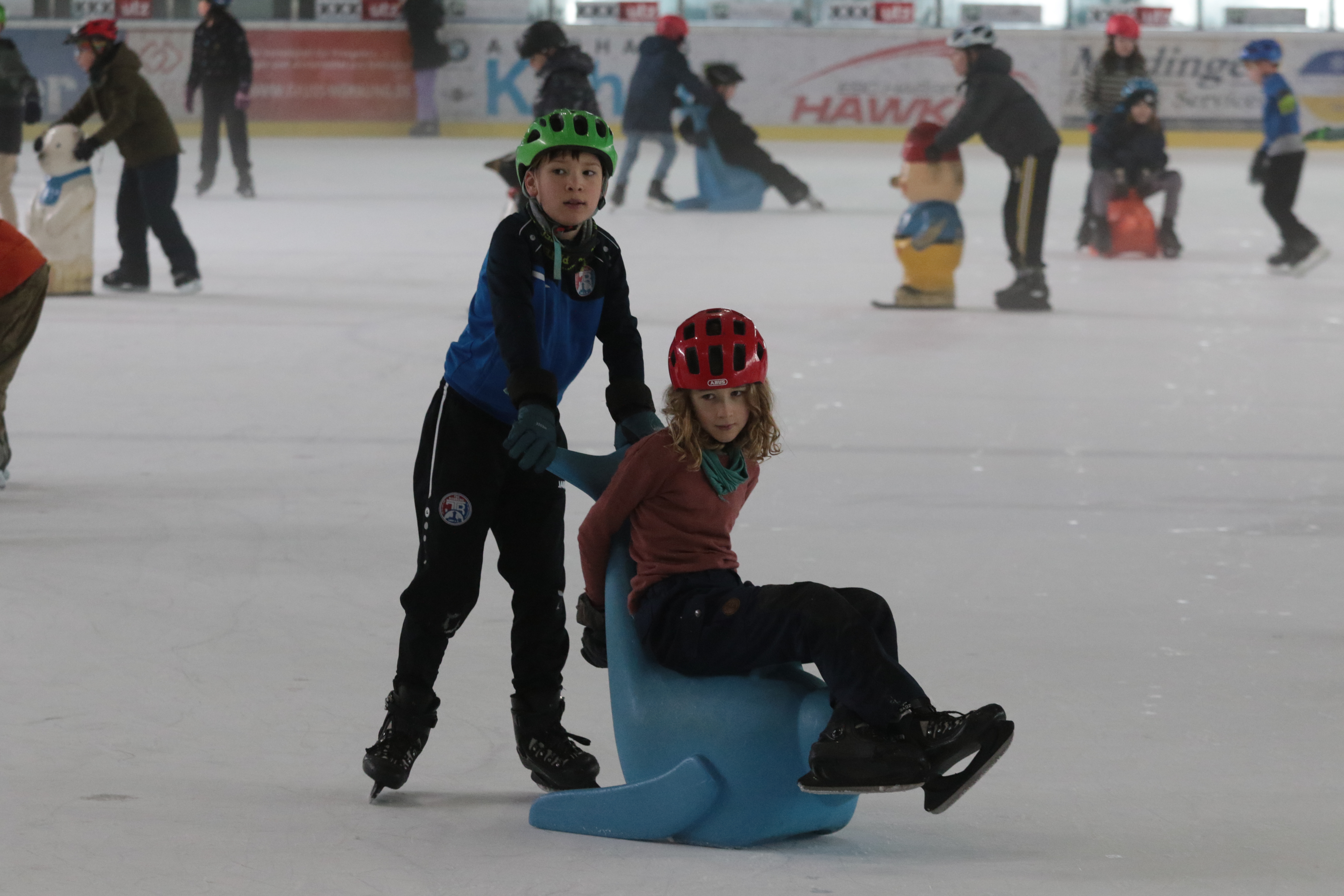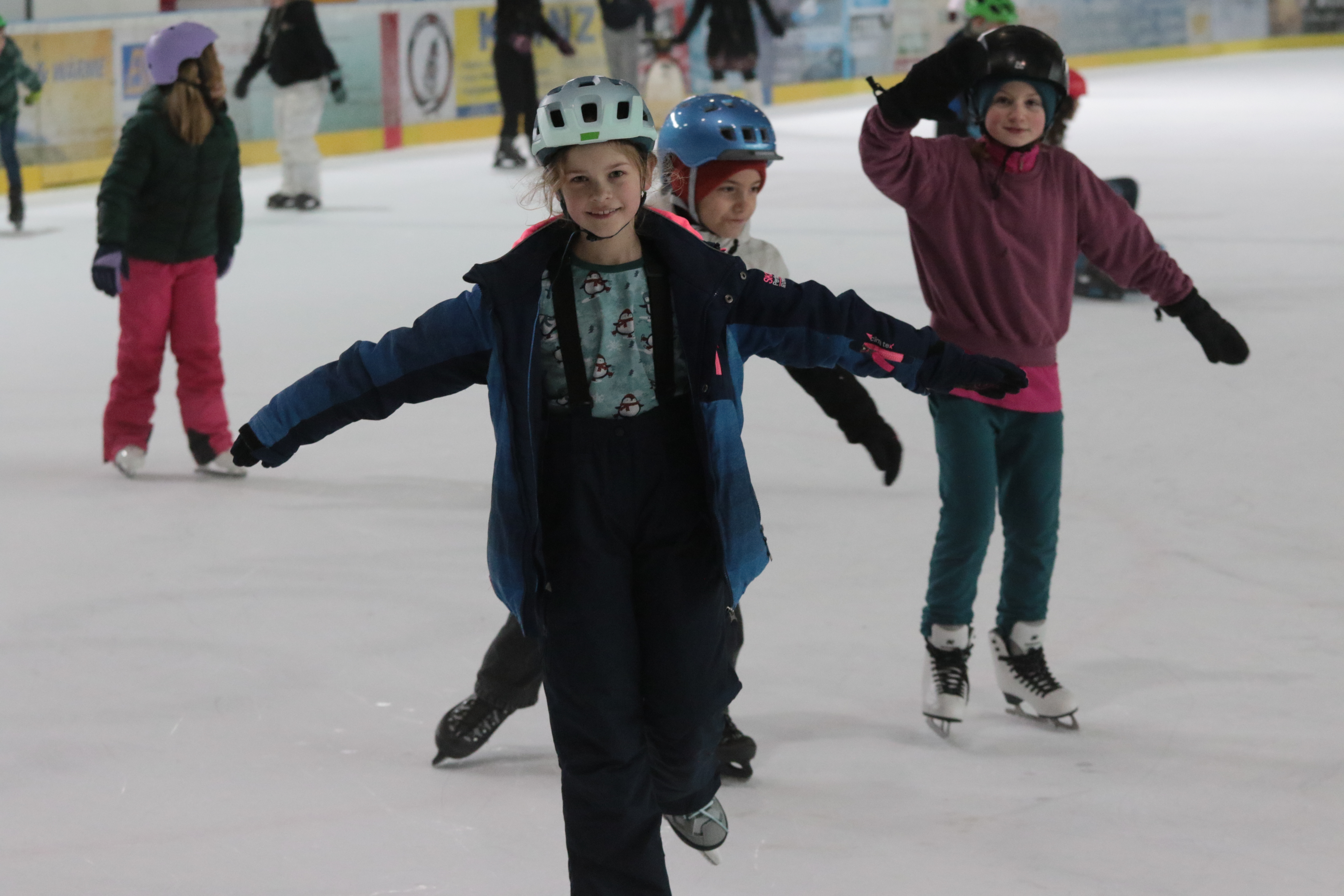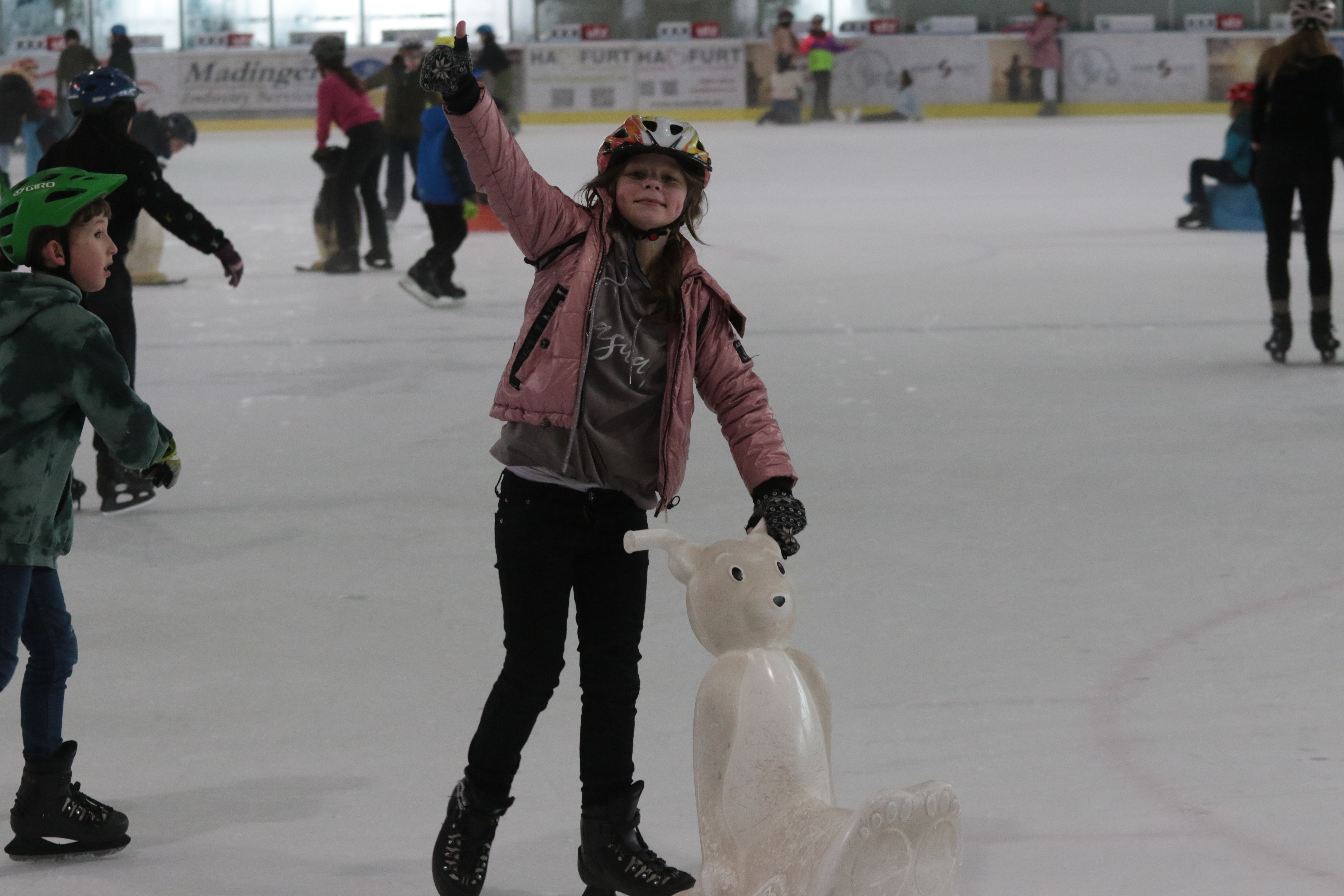 Doch selbst der ein oder andere Sturz wurde tapfer weggelächelt. Alle Kinder tobten sich auf der Eislauffläche prächtig aus, probierten kleine Kunststücke oder schnappten sich einfach Freundin oder Freund, um gemeinsam das Schlittschuhlaufen auszuprobieren.