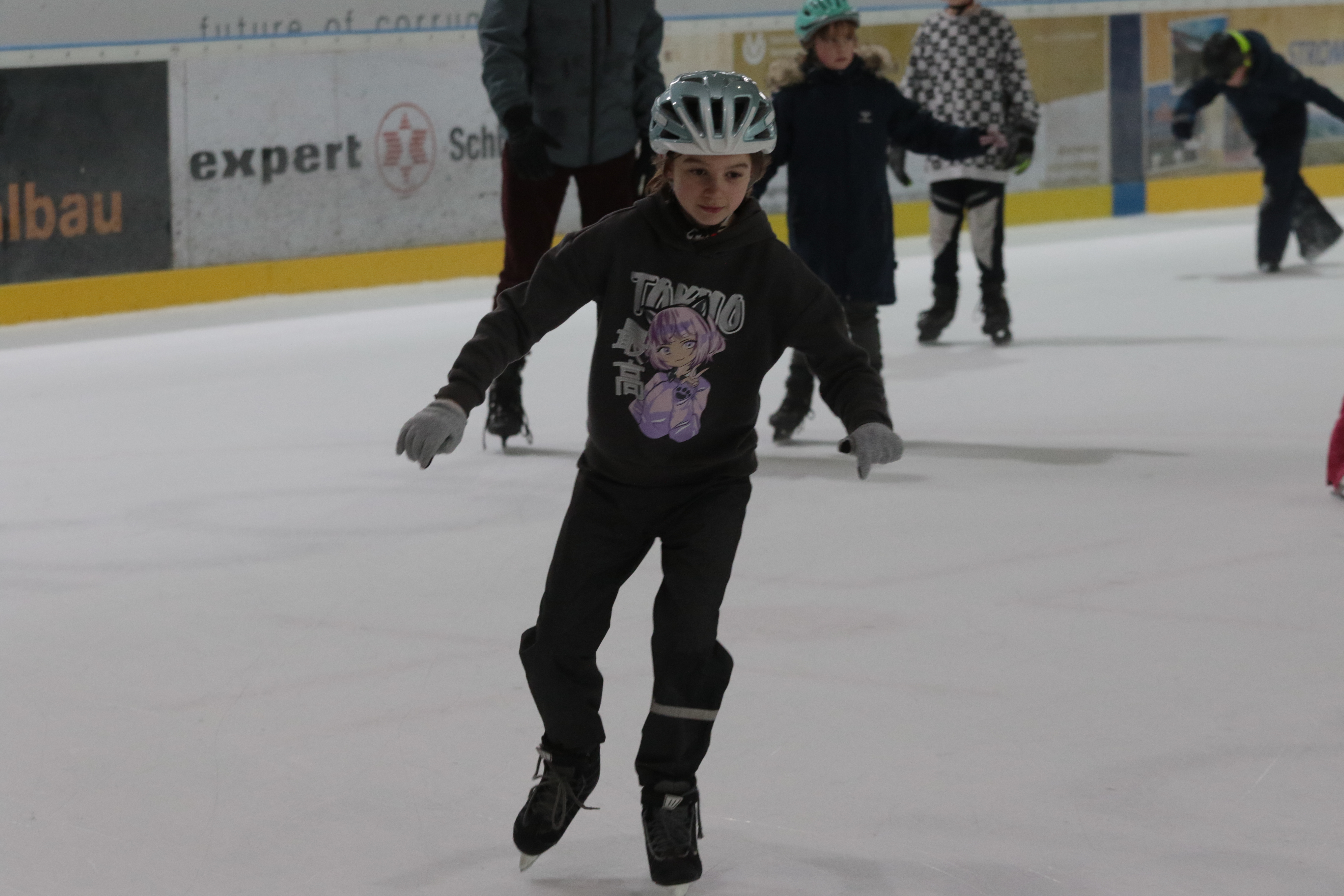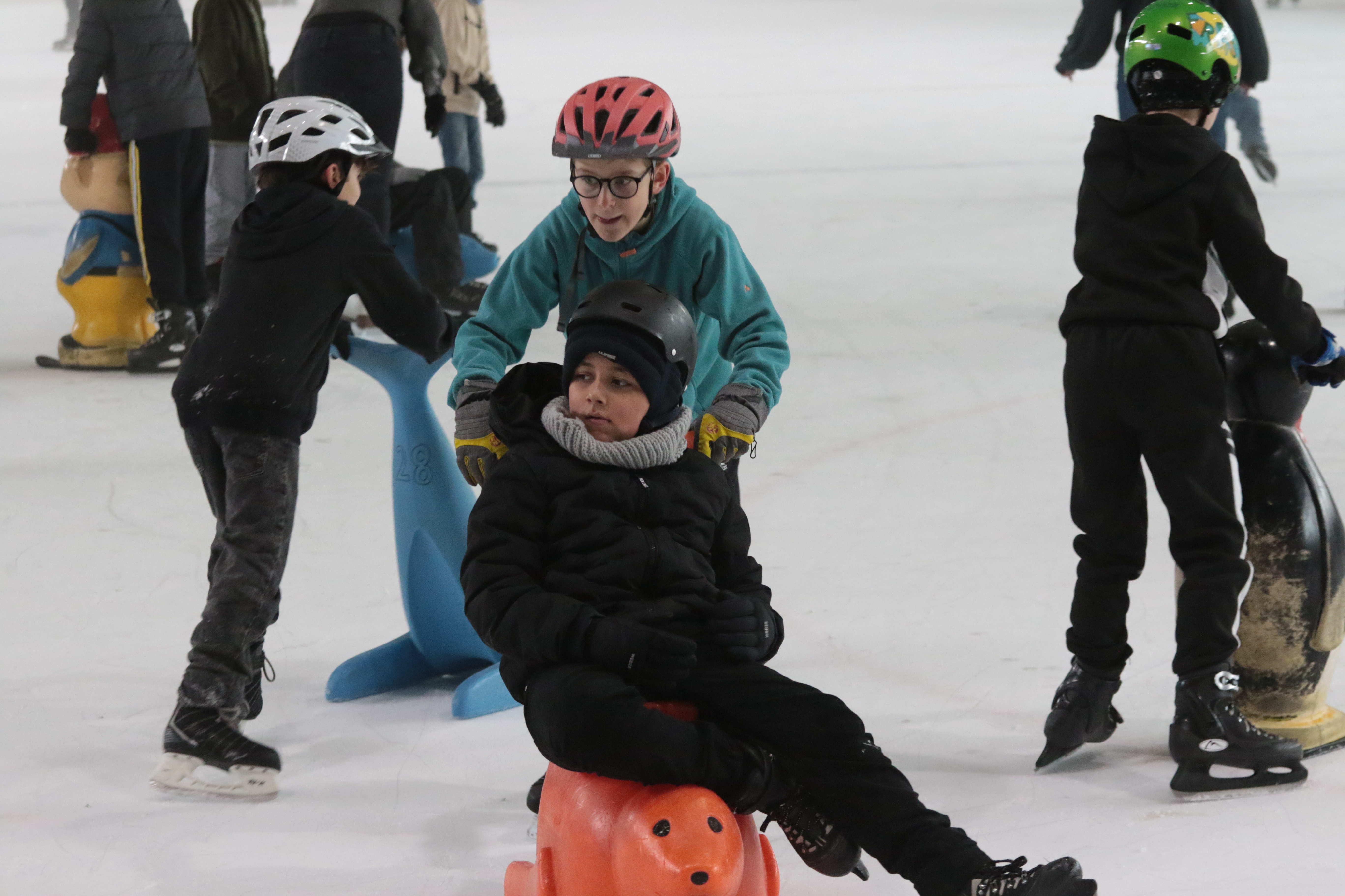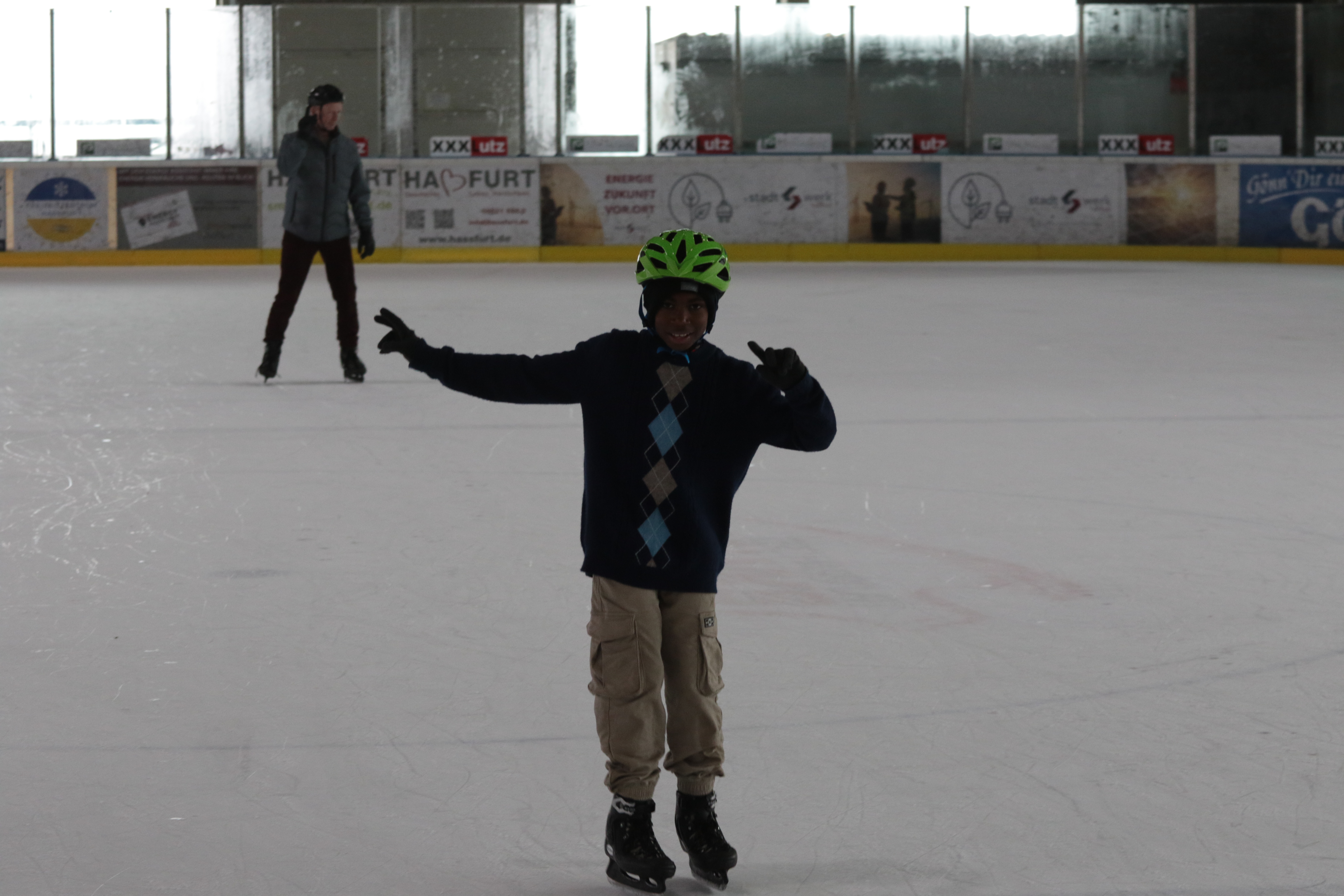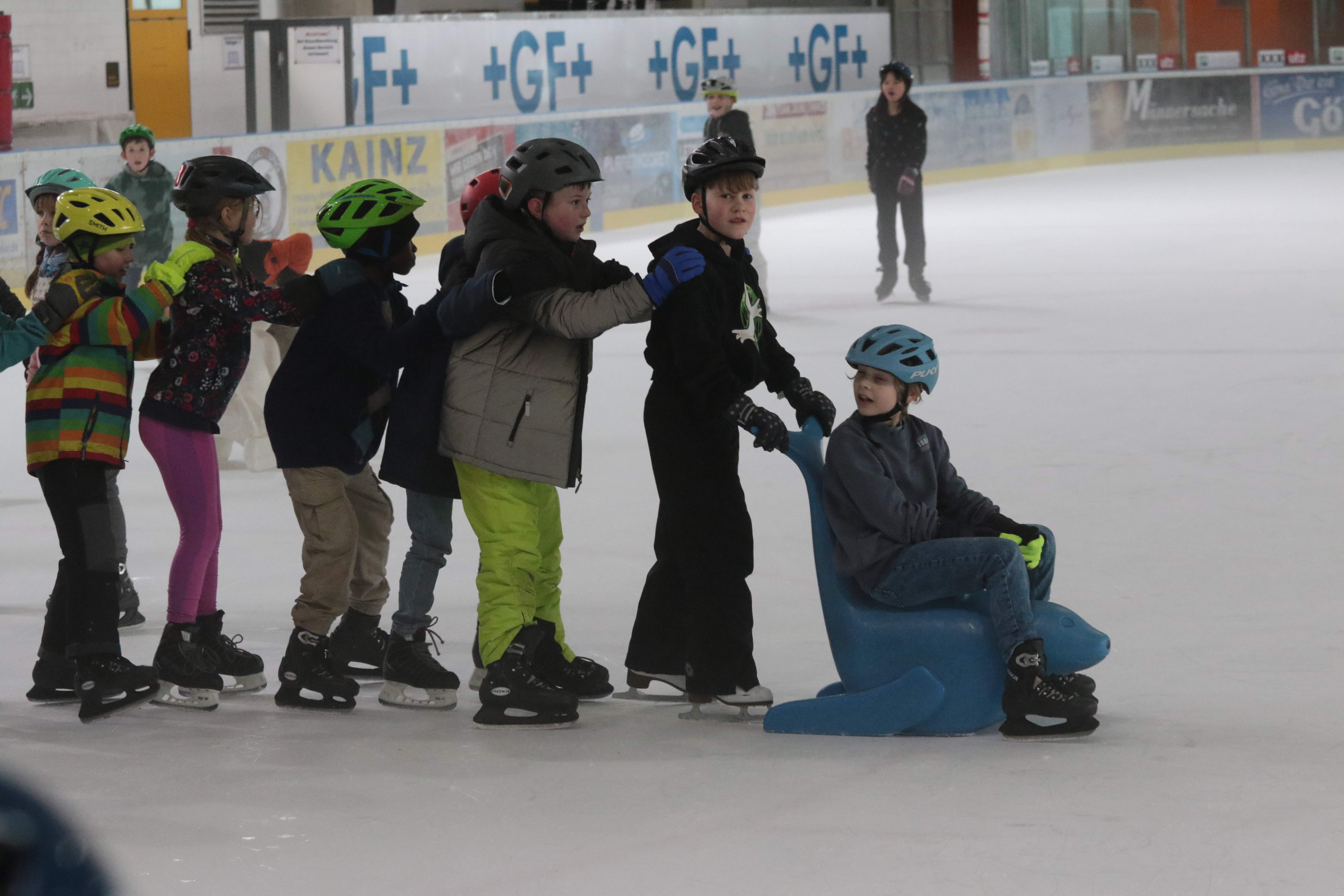 Doch selbst der ein oder andere Sturz wurde tapfer weggelächelt. Alle Kinder tobten sich auf der Eislauffläche prächtig aus, probierten kleine Kunststücke oder schnappten sich einfach Freundin oder Freund, um gemeinsam das Schlittschuhlaufen auszuprobieren.