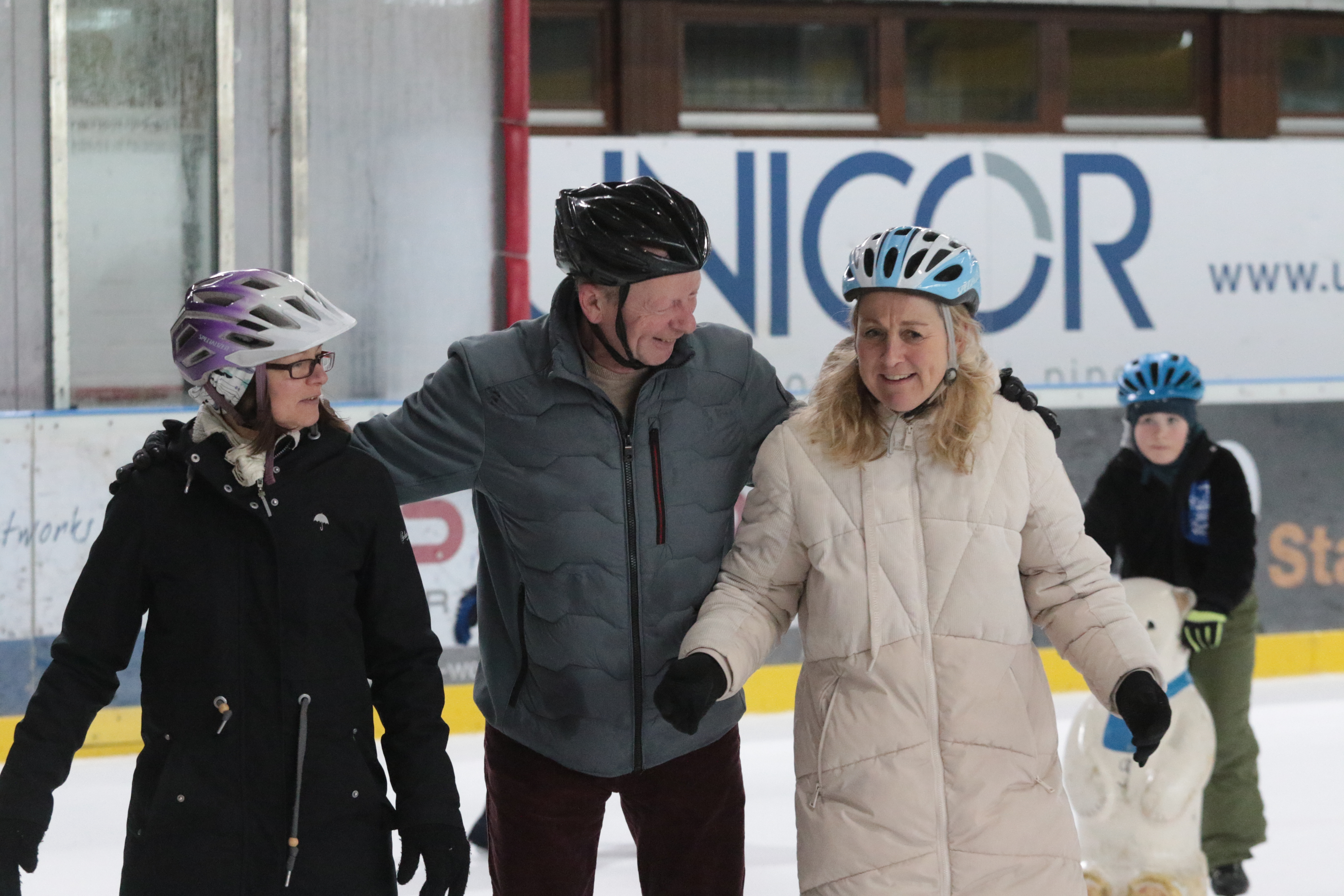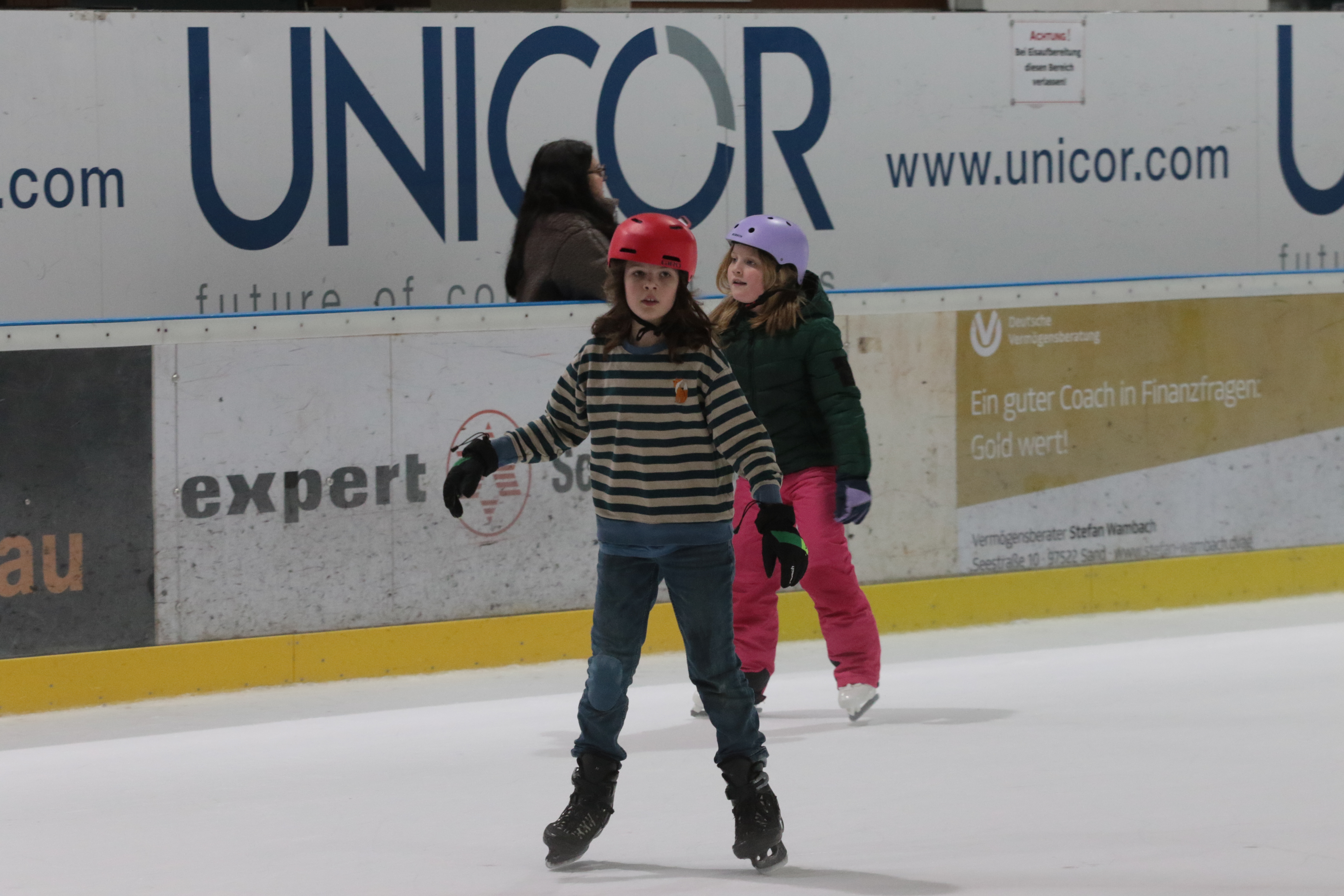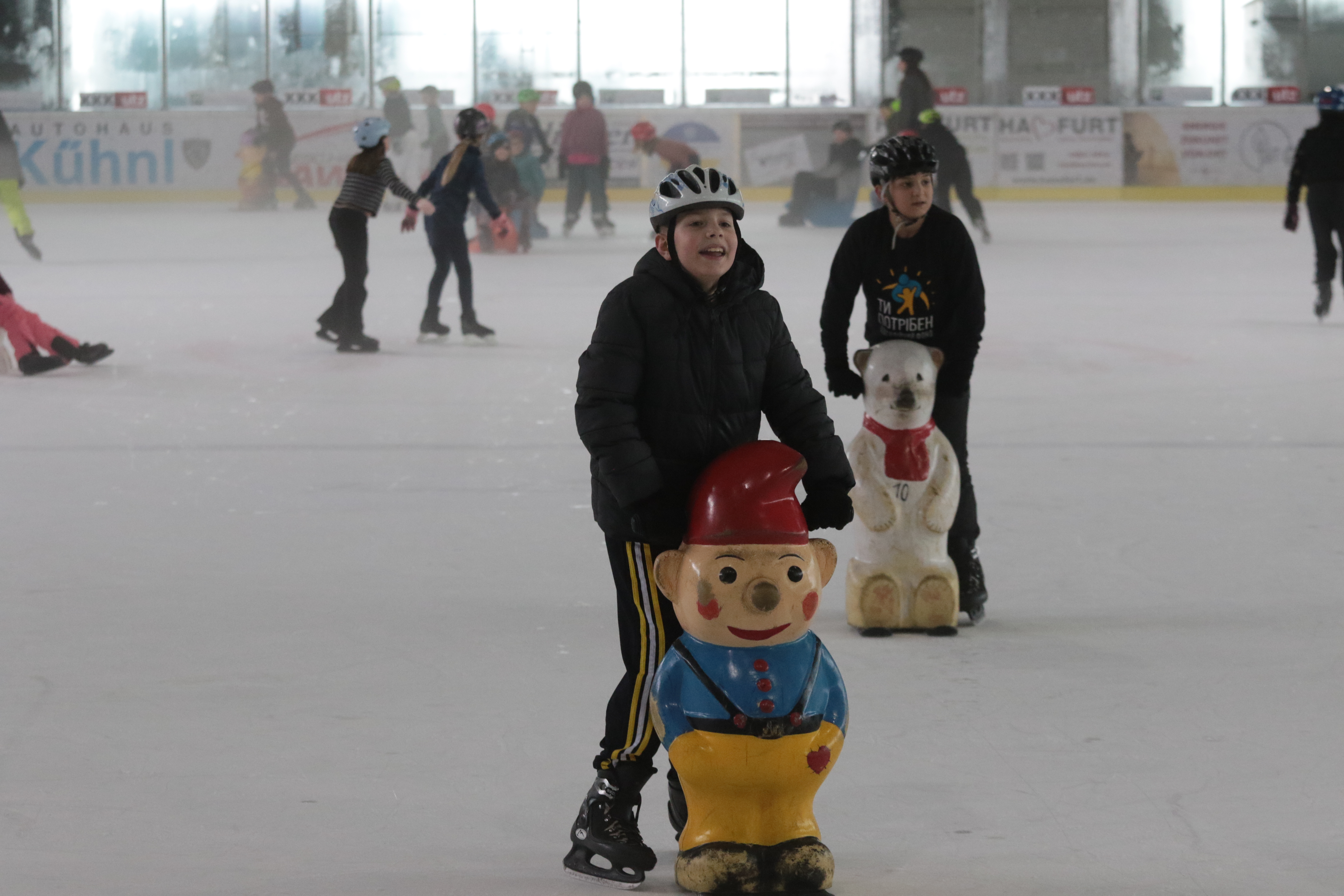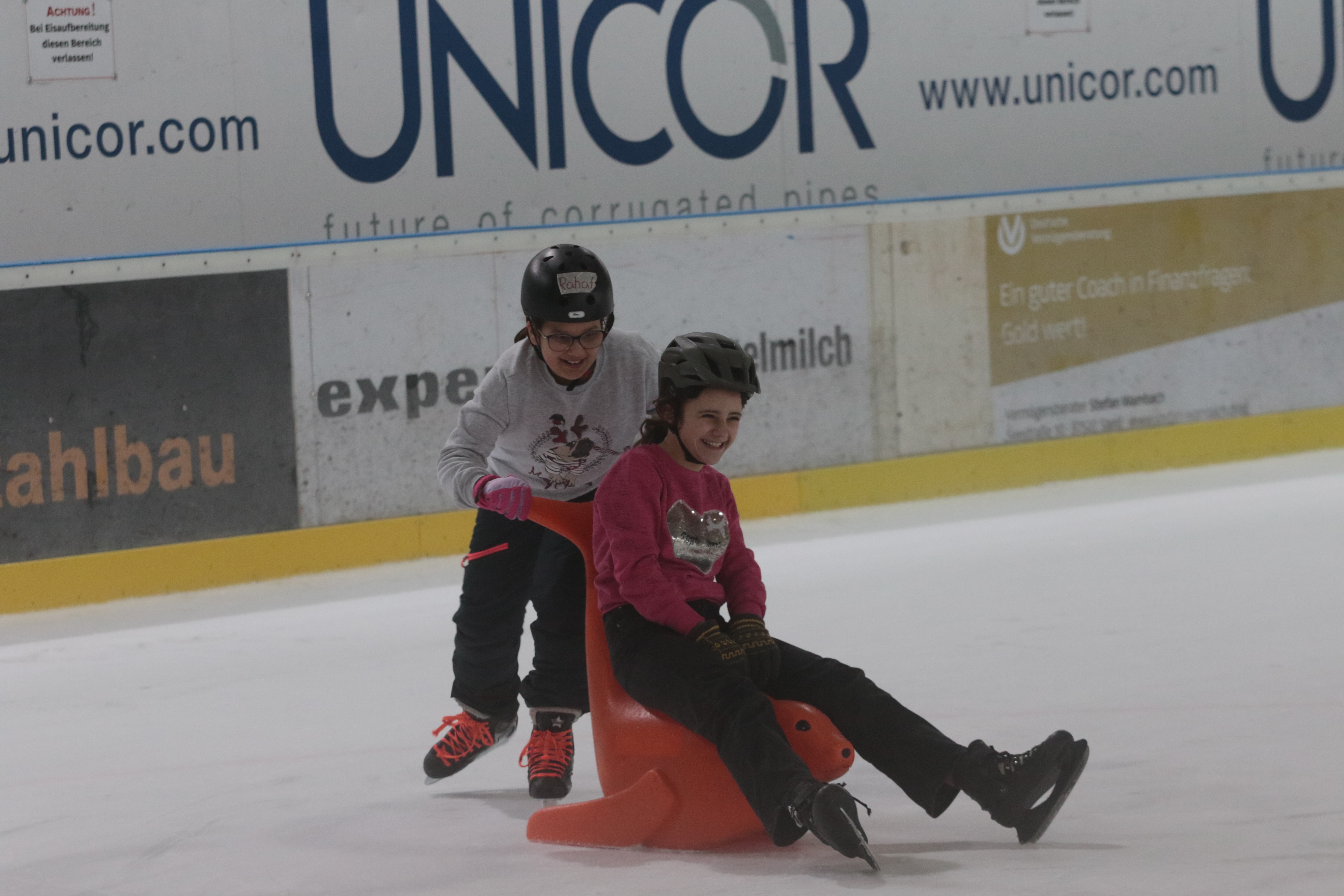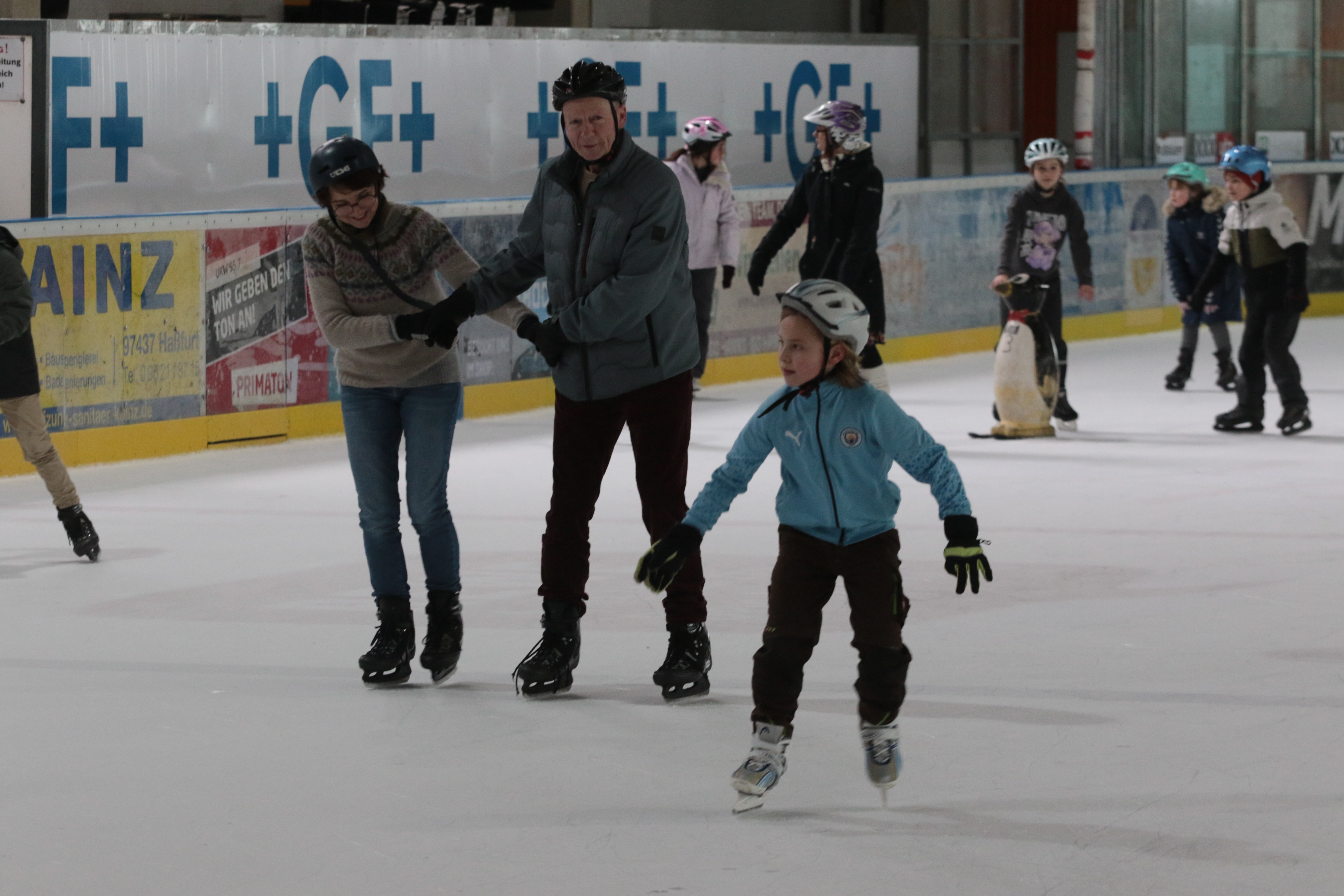 Doch selbst der ein oder andere Sturz wurde tapfer weggelächelt. Alle Kinder tobten sich auf der Eislauffläche prächtig aus, probierten kleine Kunststücke oder schnappten sich einfach Freundin oder Freund, um gemeinsam das Schlittschuhlaufen auszuprobieren.